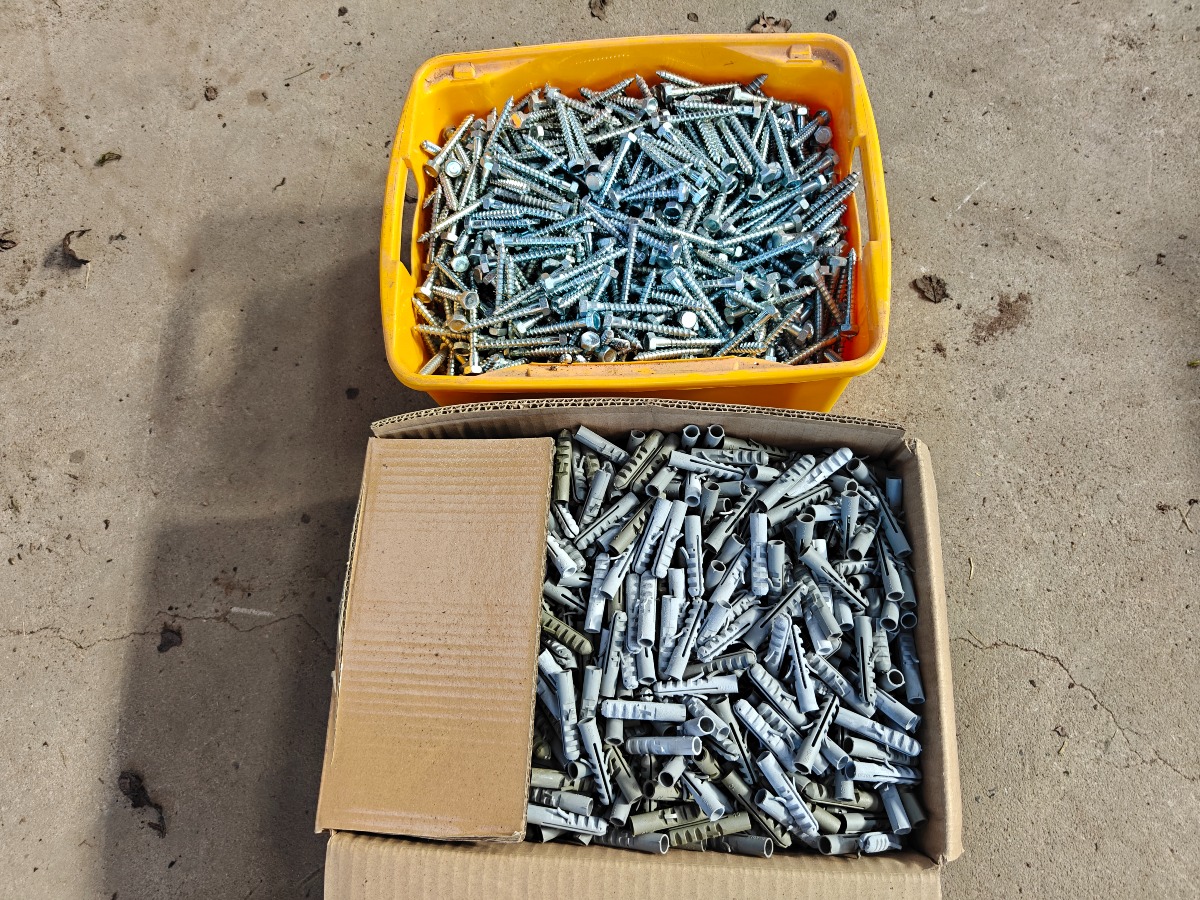 Parti franske skruer & ravplugs gul plast kasse med skruer pap kasse med ravplugs