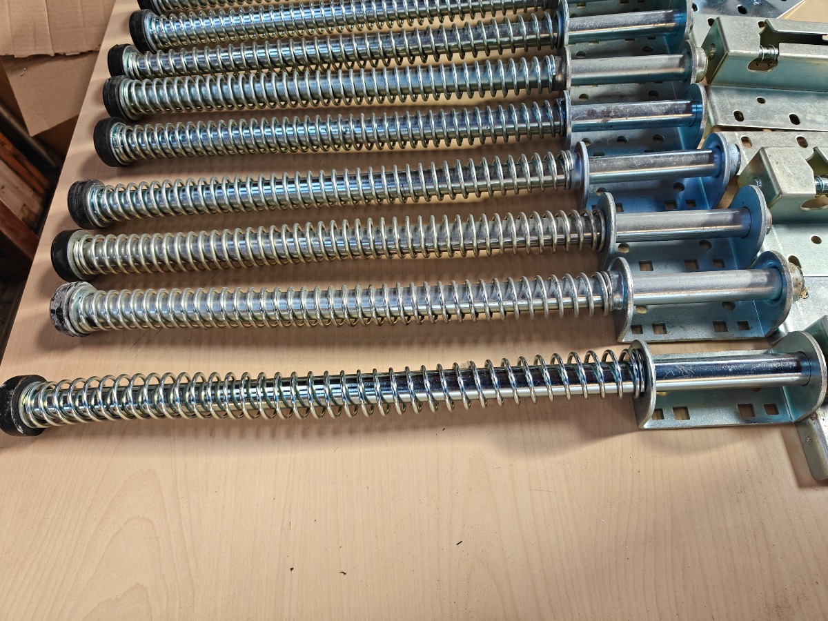 10 stk stop fjedre & 5 stk låsepal til ledhejseporte, ubrugte