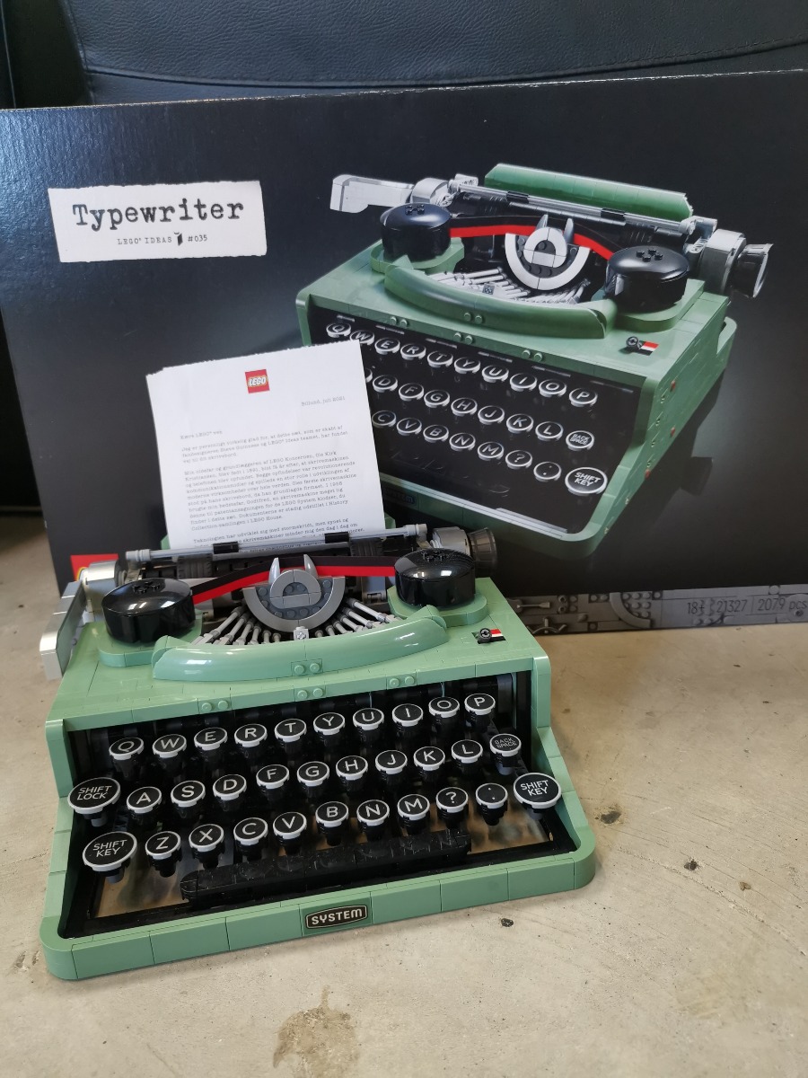LEGO Creator Skrivemaskine 21327. Genstanden er samlet. Vi garanterer ikke for eventuelle mangler. Æske medfølger. Fra rygerhjem. Umiddelbart forefindes alle samlemanualer.