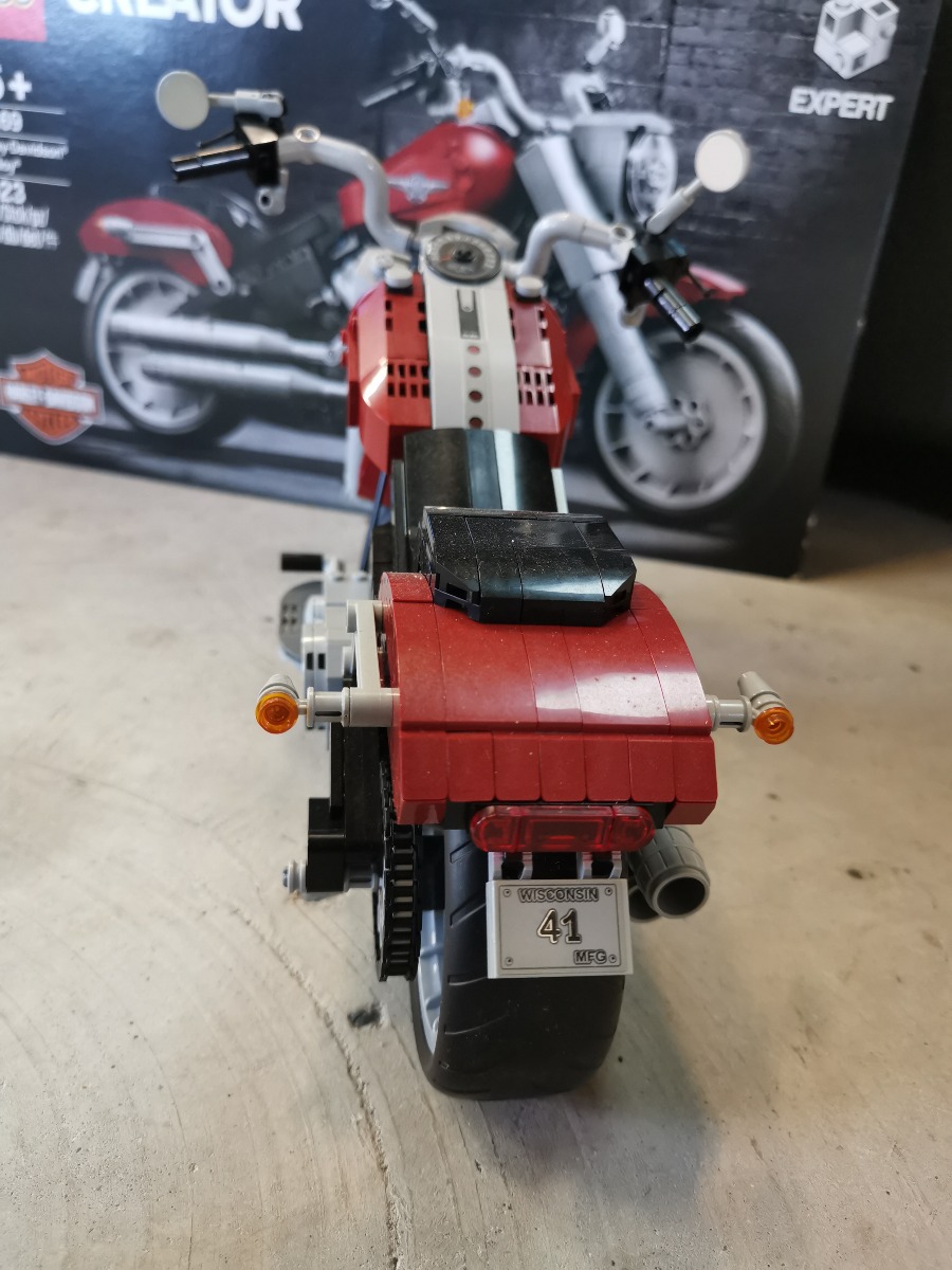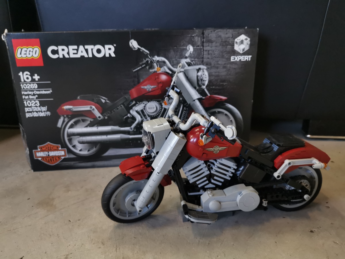 LEGO Creator Harley- Davidson Fat Boy 10269. Genstanden er samlet. Vi garanterer ikke for eventuelle manglæer. Æske medfølger. Fra rygerhjem. Umiddelbart forefindes alle samlemanualer.