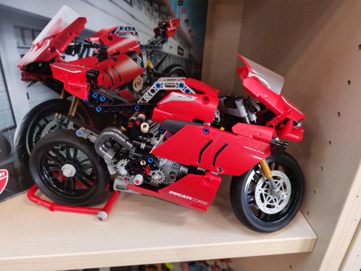 LEGO Technic Ducati Parigale V4 R 42107. Genstanden er samlet. Vi garanterer ikke for eventuelle mangler. Æske medfølger. Fra rygerhjem. Umiddelbart forefindes alle samlemanualer.