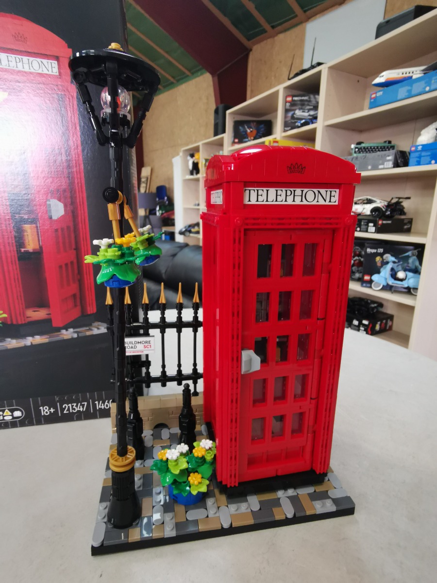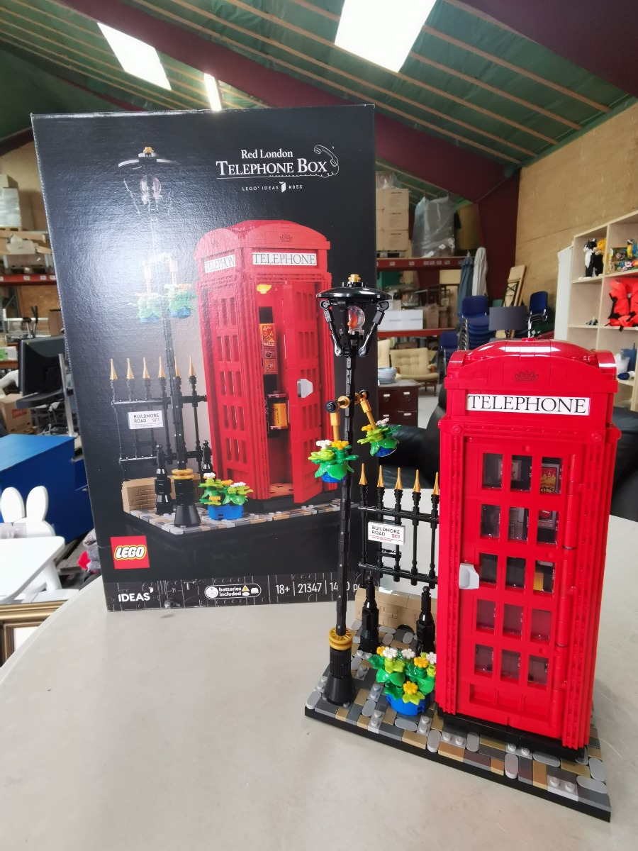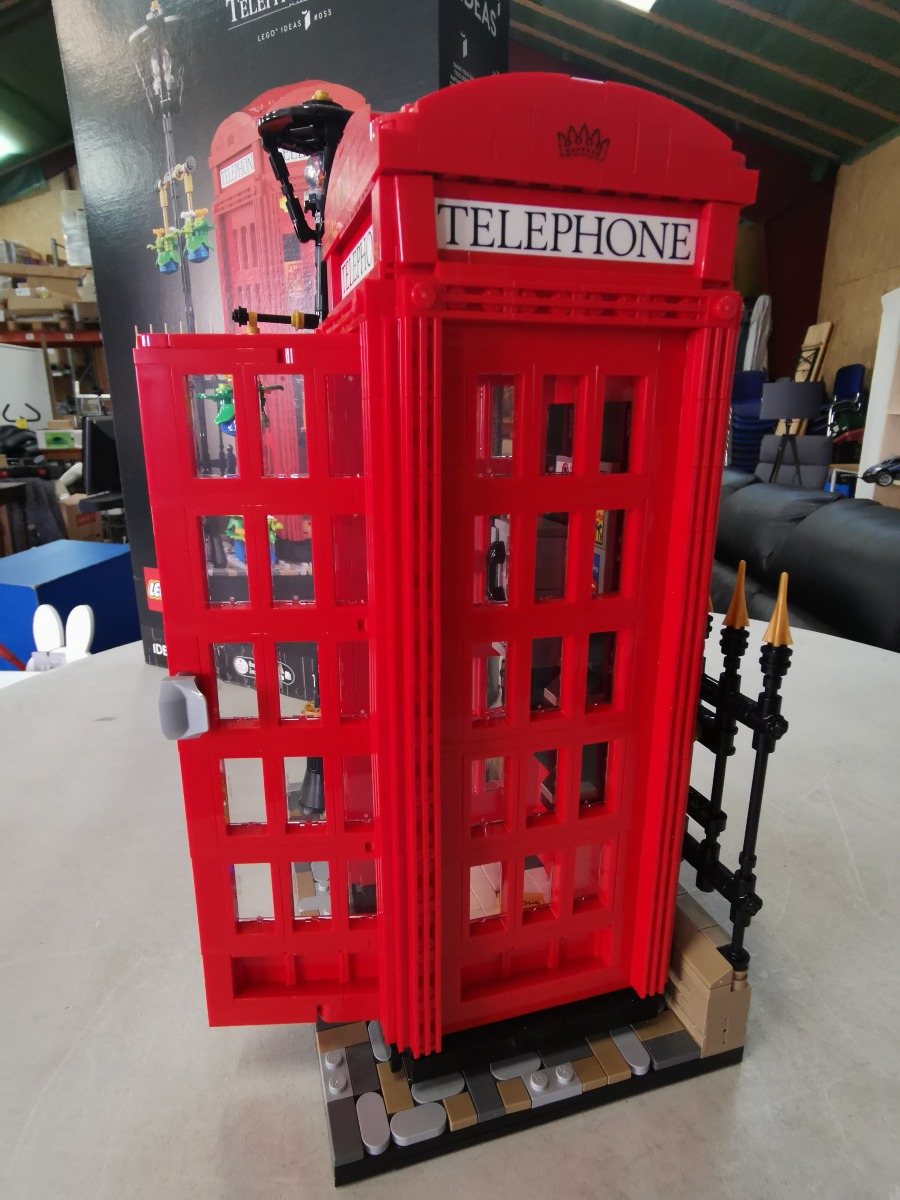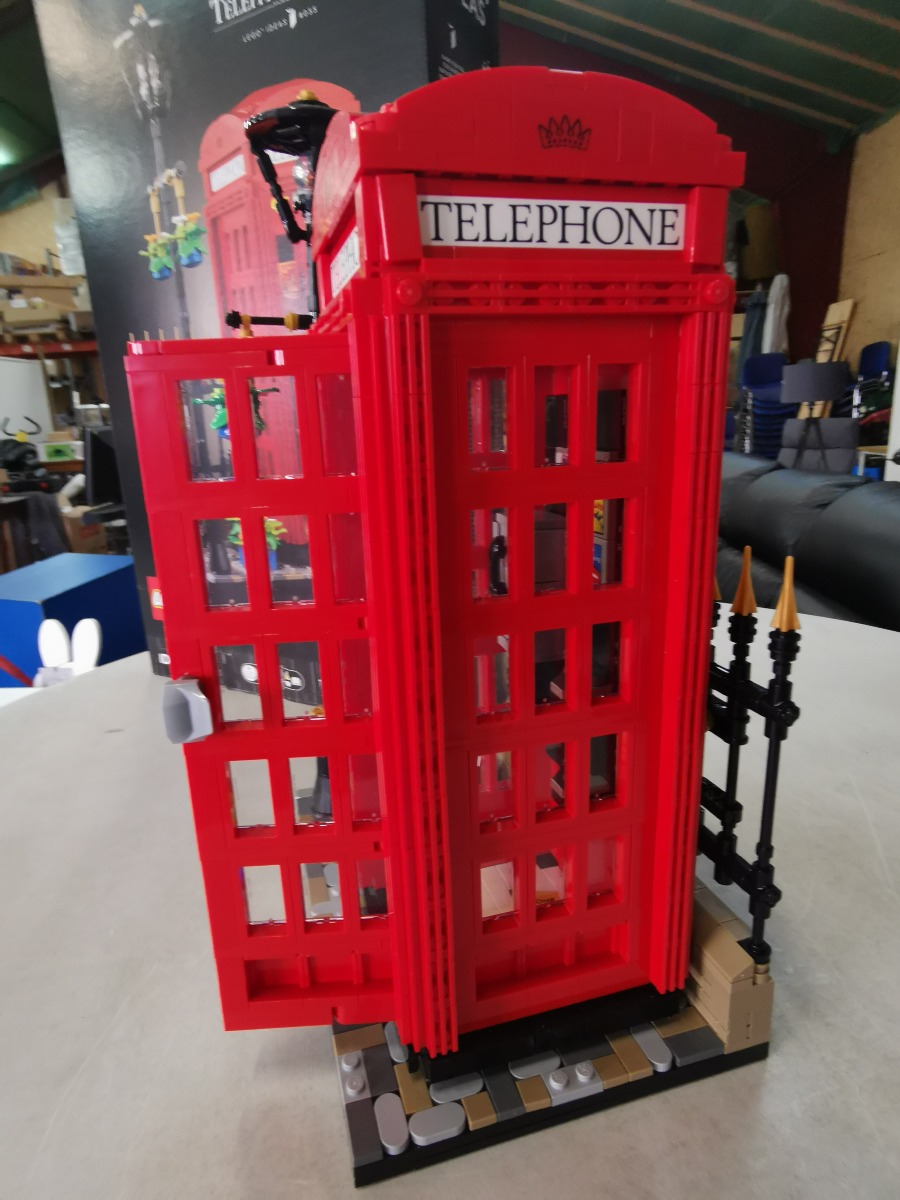 LEGO Ideas Red London Telephone Box 21347. Genstanden er samlet. Vi garanterer ikke for eventuelle mangler. Æske medfølger og har en snært af røglugt. Umiddelbart forefindes alle samlemanualer.