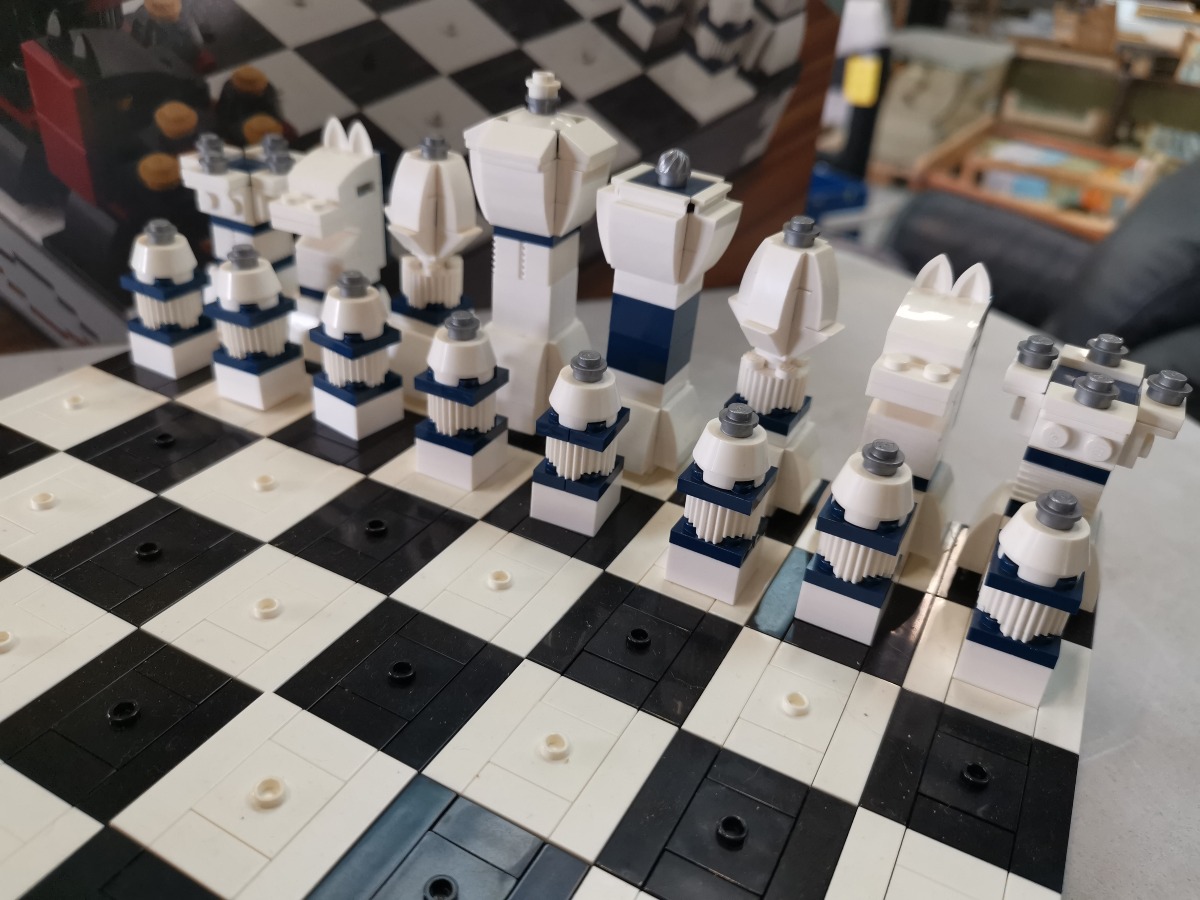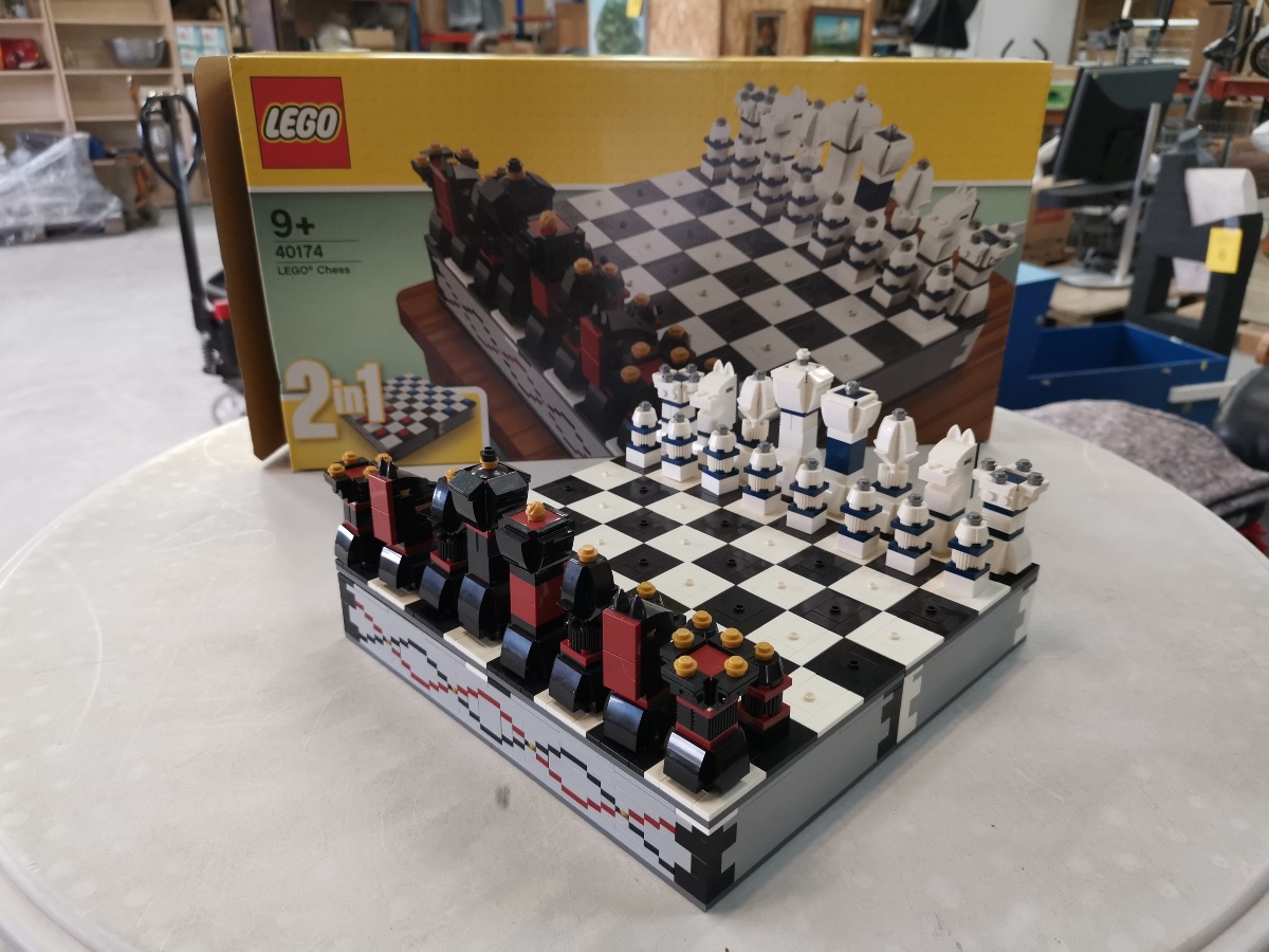 LEGO Iconic Chess Set 40174. Genstanden er samlet. Vi garanterer ikke for eventuelle mangler. Æske medfølger og har en snært af røglugt. Umiddelbart forefindes alle samlemanualer.