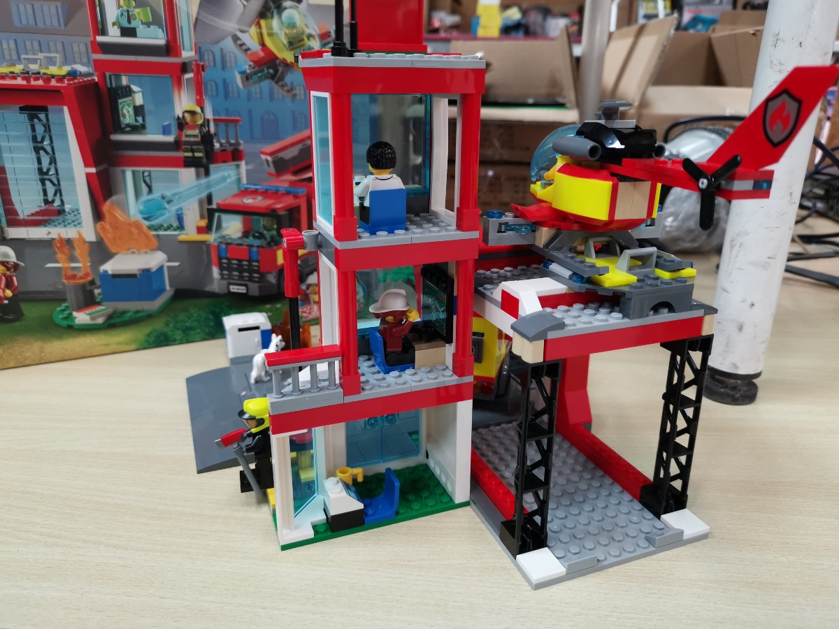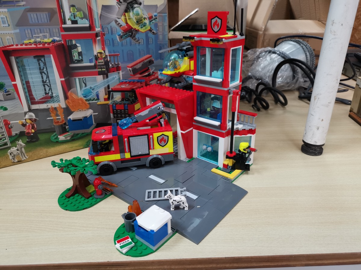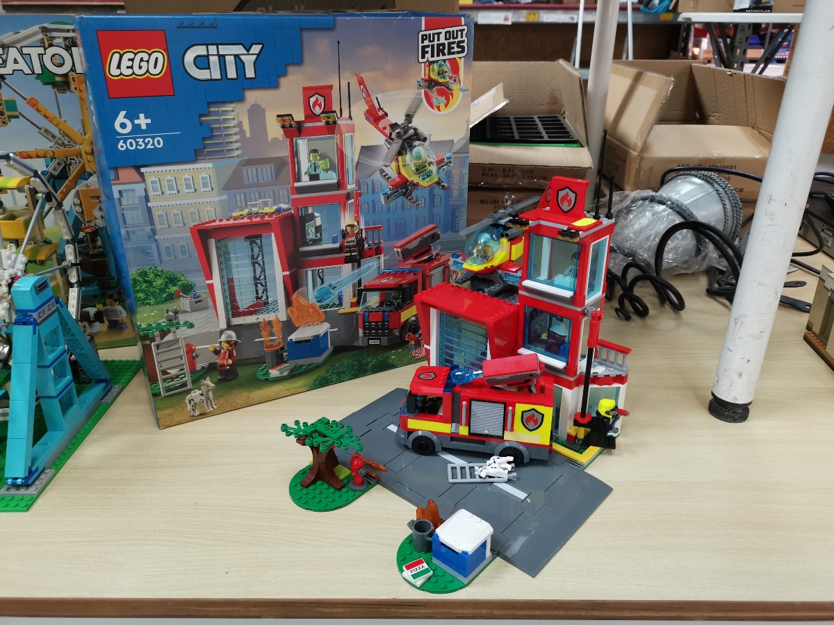 LEGO City Brandstation 60320. Genstanden er samlet. Vi garanterer ikke for eventuelle mangler. Æske medfølger og har en snært af røglugt. Umiddelbart forefindes alle samlemanualer.