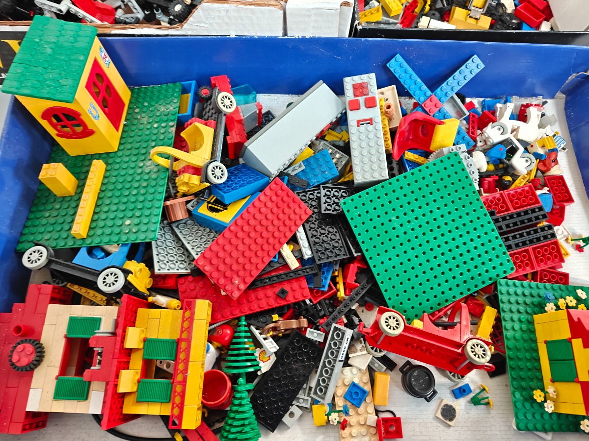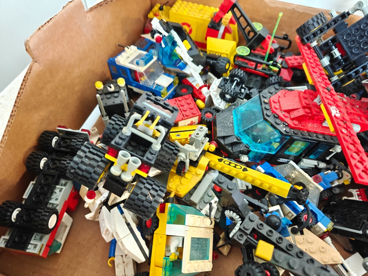 Lego. Stor samling klodser. Kasse med mindre modeller der er samlet samt løse klodser. Alt fra alm. Lego til Technic og andet.