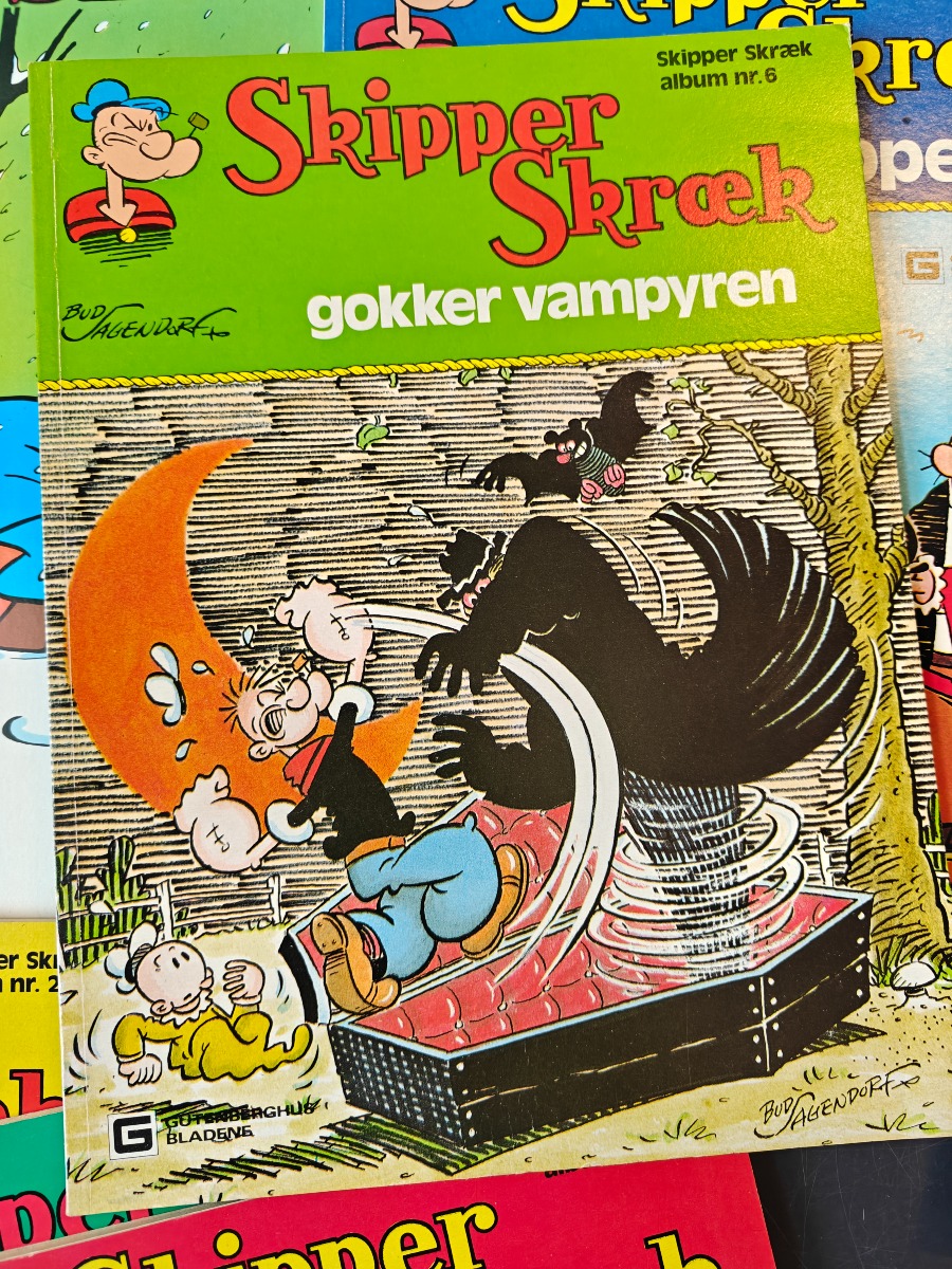 Skipper Skræk 1 - 7 samt hæfte med Knold og Tot og Basserne. Brugte men i god stand.