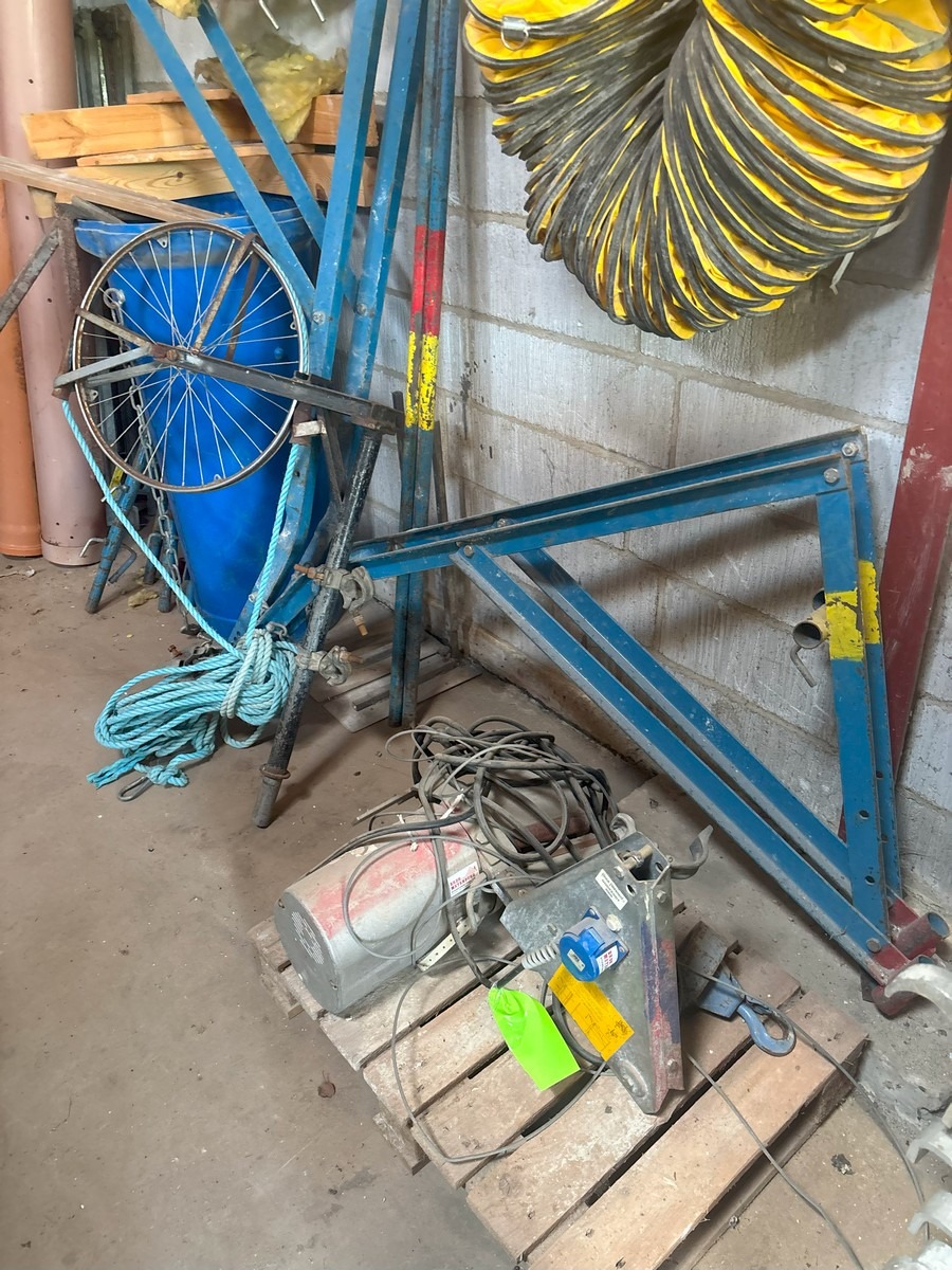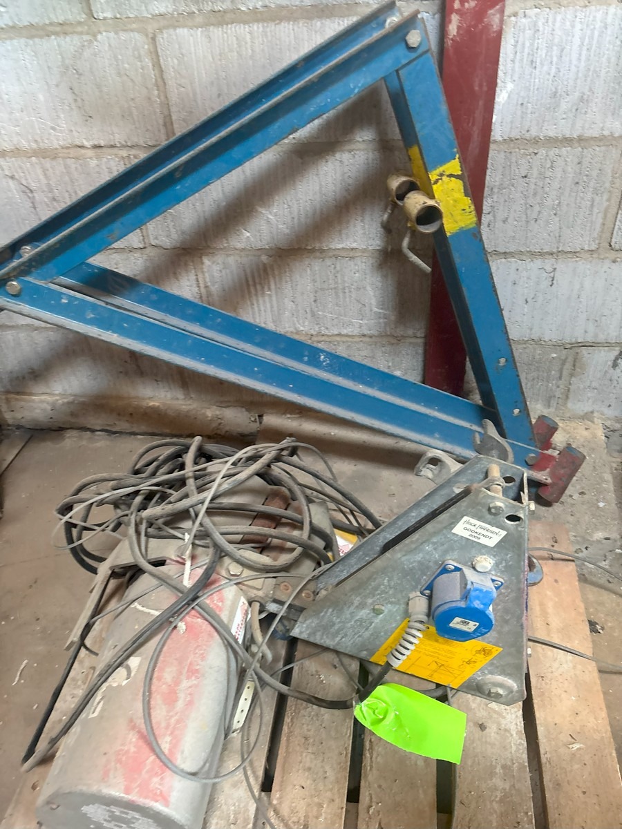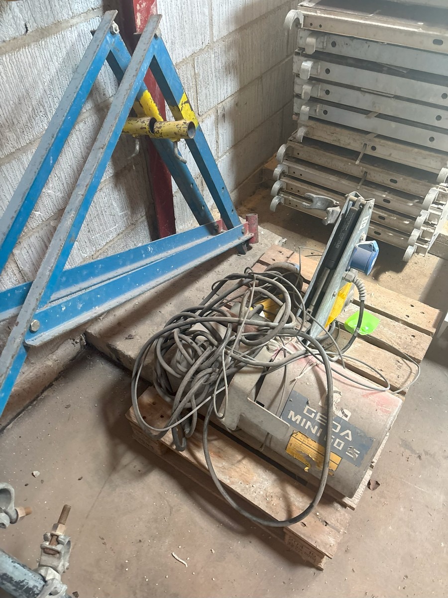 Står i 6230 Rødekro. Stilladshejs. Brugt. Fra byggevirksomhed. +MOMS