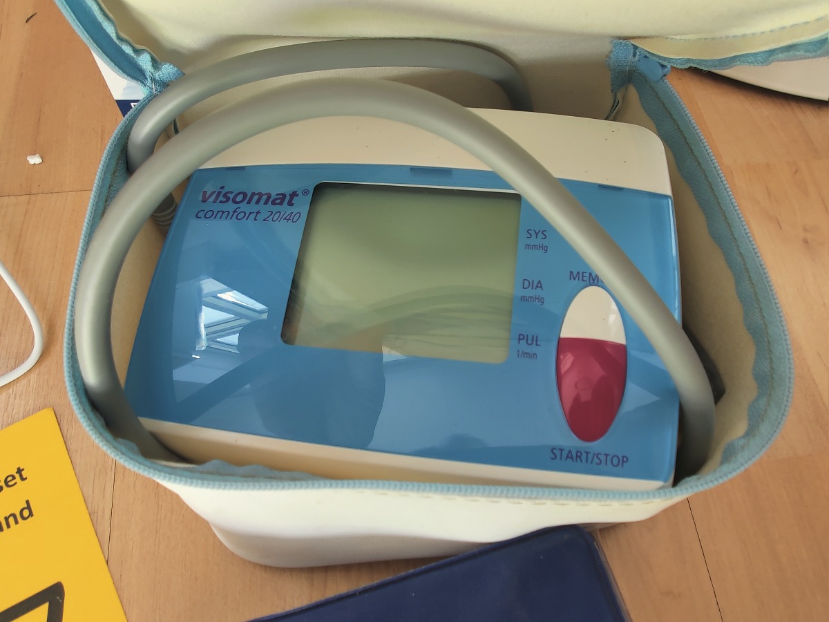 Står i 6520 Toftlund. 2 stk. blodtryksmålere, den ene ældre og den anden nyere og pilleæsker med itu. Brugt. Fra flytning/dødsbo. MOMSFRI