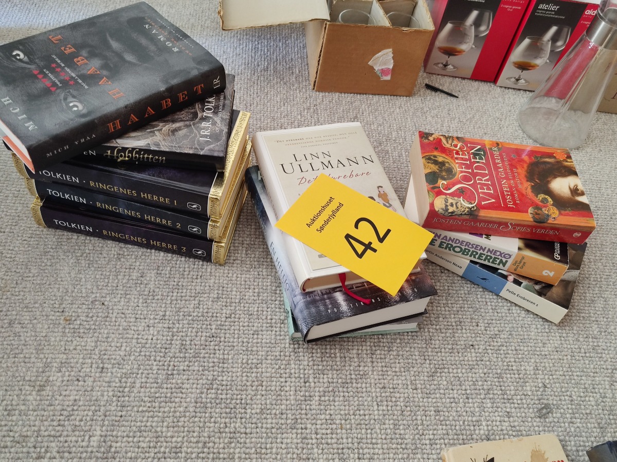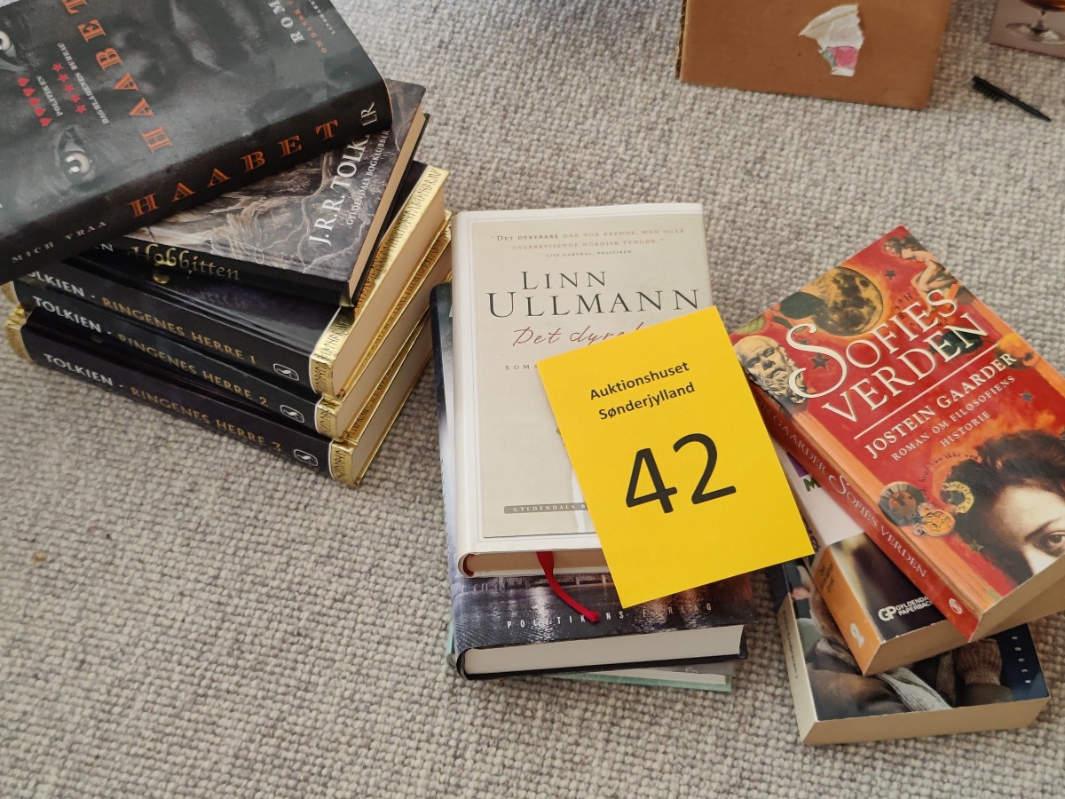 Står i 6200 Aabenraa. Bøger - Ringenes Herre 1, 2 og 3, Hobitten, samt diverse romaner. Brugt. Fra dødsbo. MOMSFRI