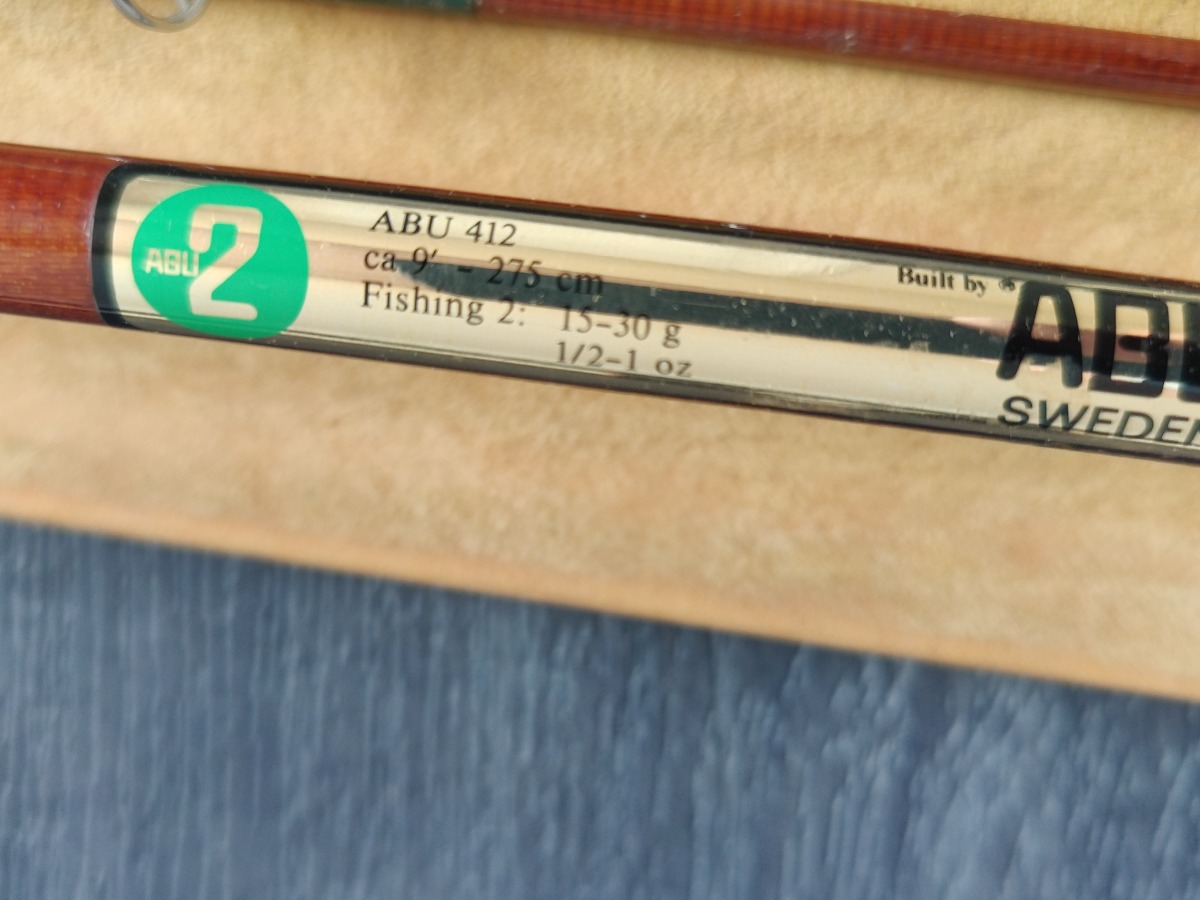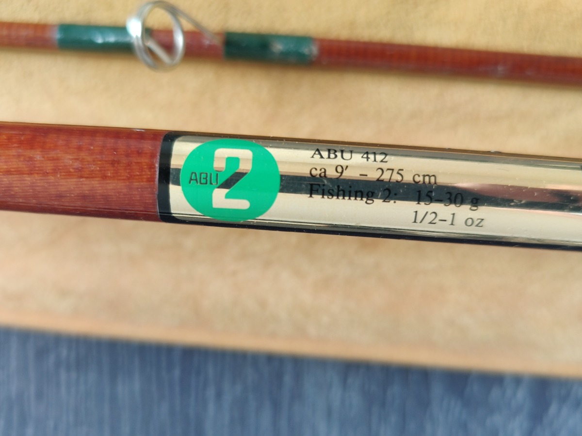 Står i 6520 Toftlund. ABU 412, 9er - 275 cm lang. Fishing 2, 15-30 g. Umiddelbart ubrugt i stofpose. Fra flytning/dødsbo. MOMSFRI
