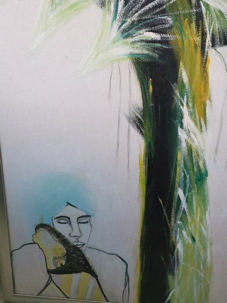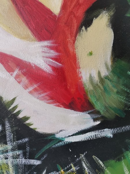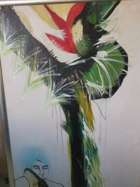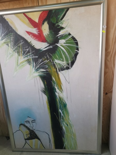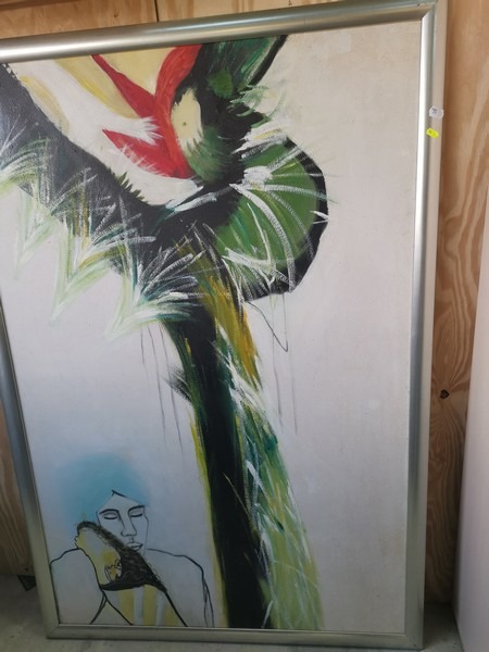 Abstrakt maleri på lærred. Det skønne ved abstrakt kunst er, at det kan forestille så mange forskellige ting afhængig af øjnene, der ser. Selv over tid, kan maleriet skifte mening. Maleriet måler ca. 110x160 cm. Brugt men i pæn stand. MOMSFRI