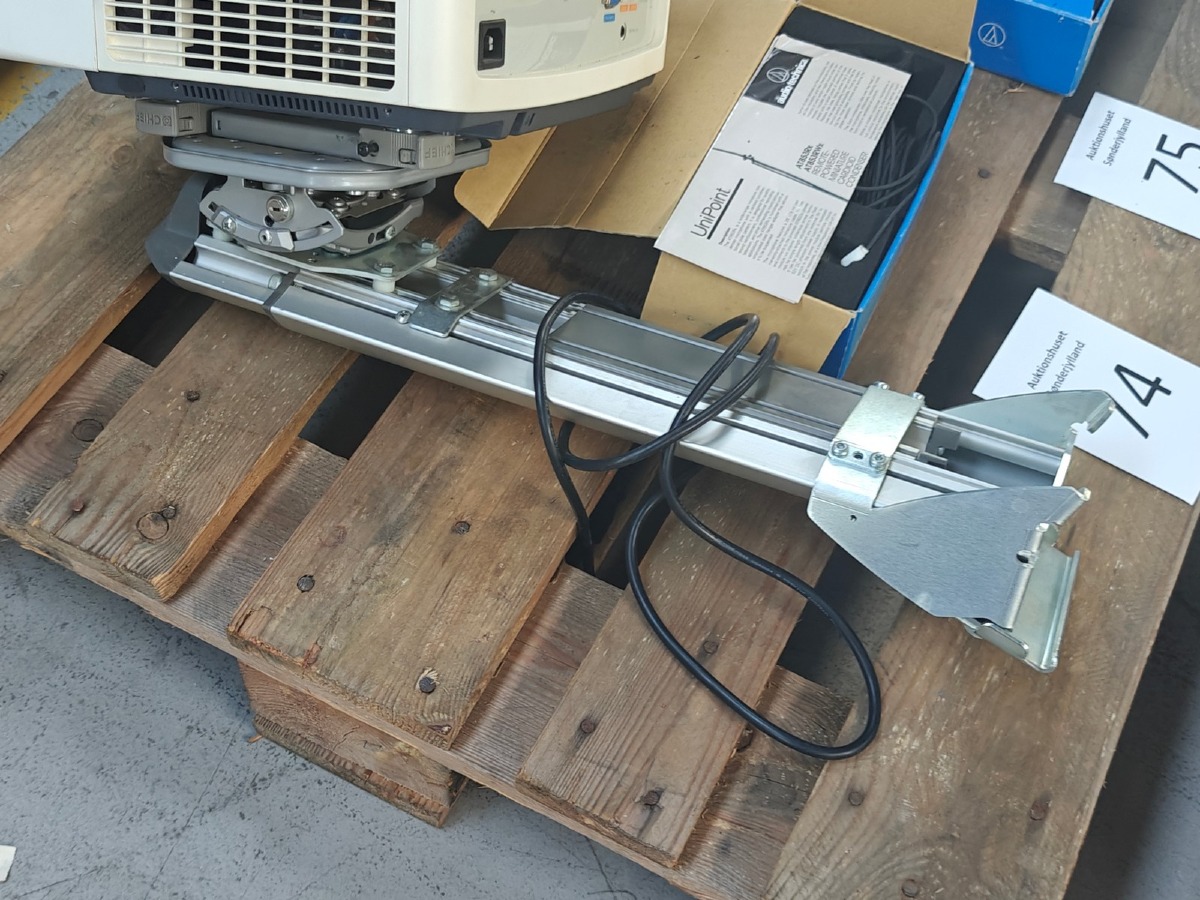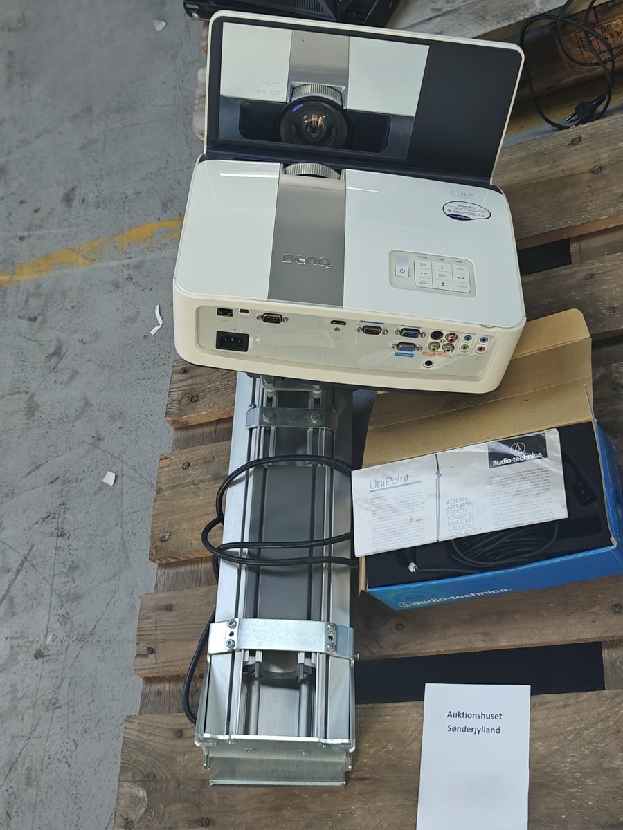 Digital projector m/beslag. Mrk Benq. Model: MX850UST. UniPoint fjernbetjent mikrofon. Model: AT853Rx (der medfølger det tilbehør, som ses i æsken). Brugte.