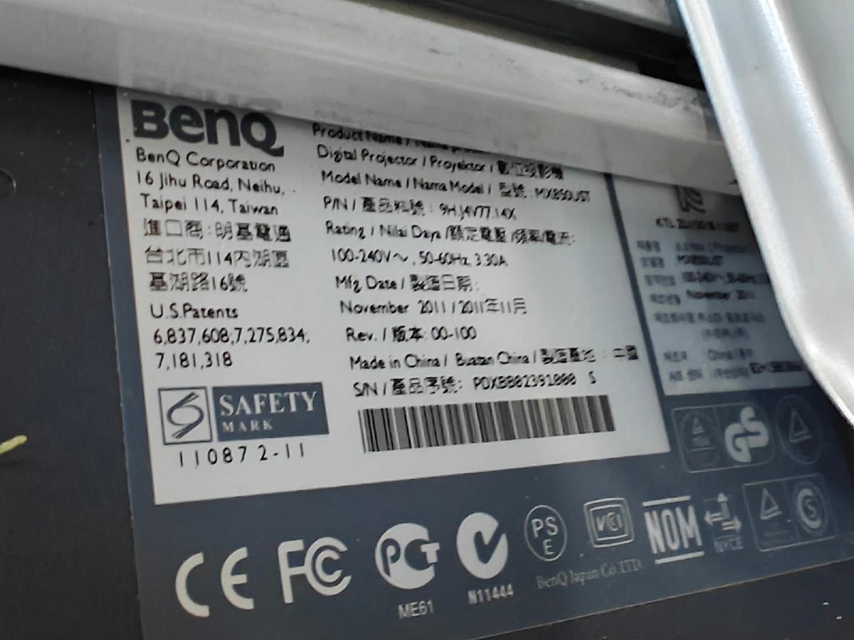 Digital projector m/beslag. Mrk Benq. Model: MX850UST. UniPoint fjernbetjent mikrofon