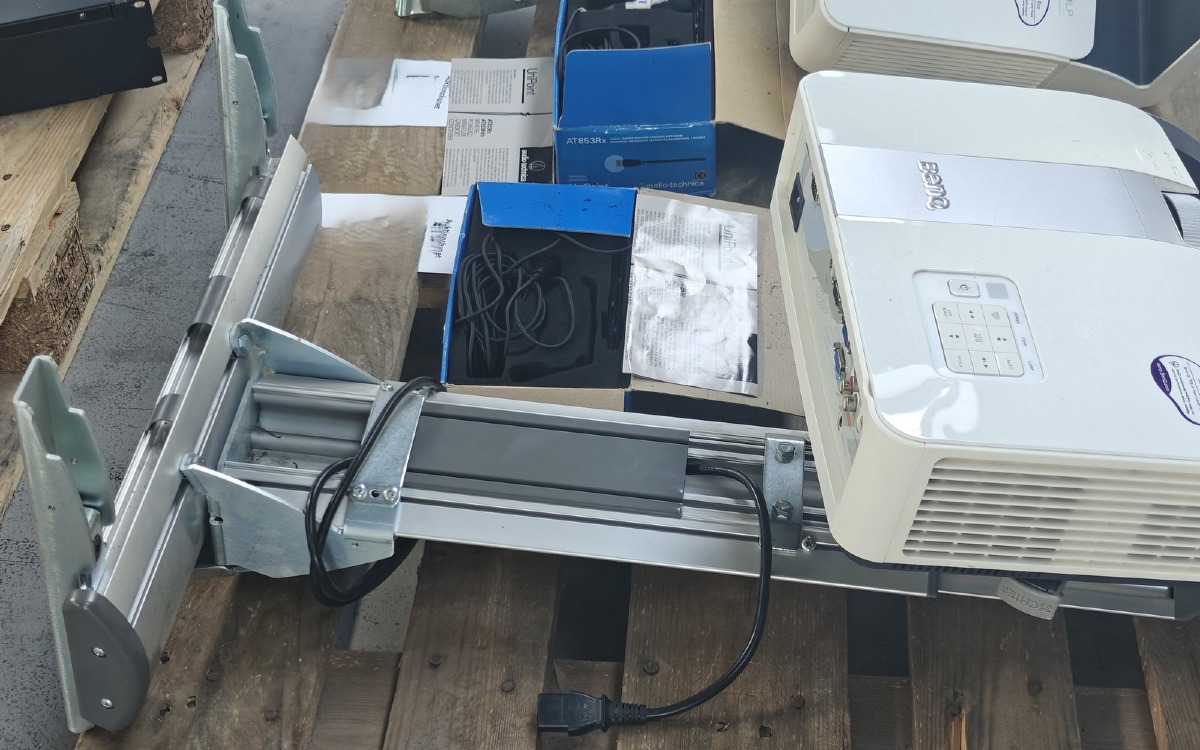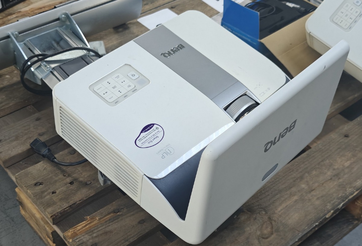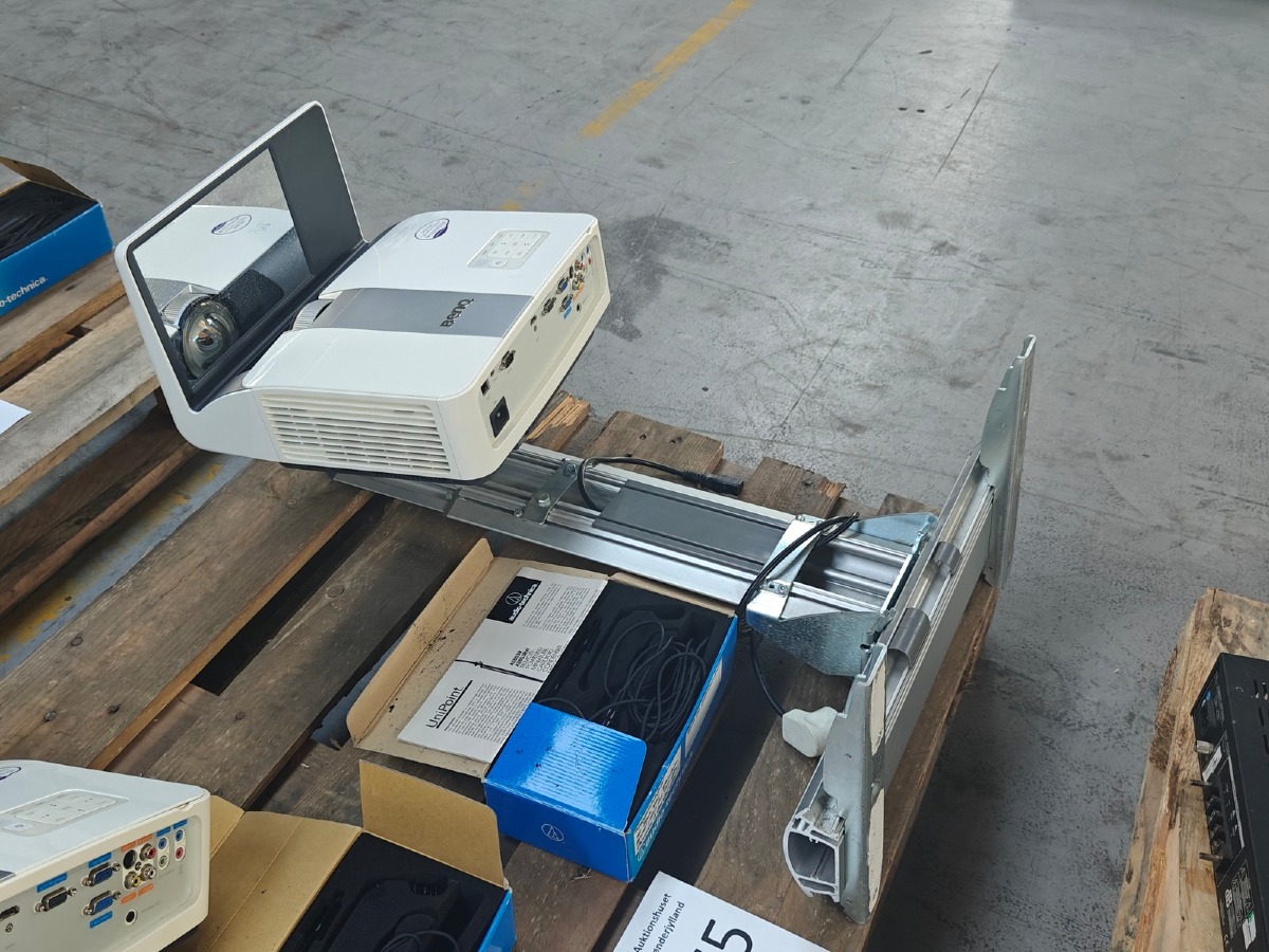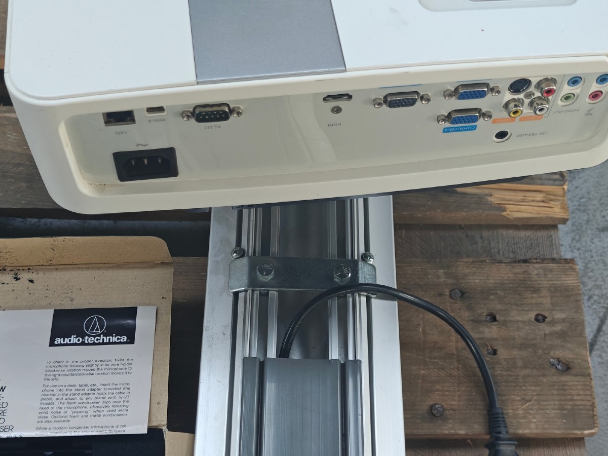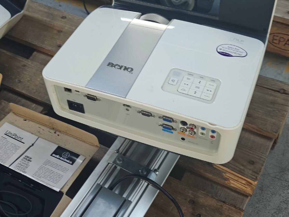 Digital projector m/beslag. Mrk Benq. Model: MX850UST. UniPoint fjernbetjent mikrofon. Model: AT853Rx (der medfølger det tilbehør, som ses i æsken). Brugte.