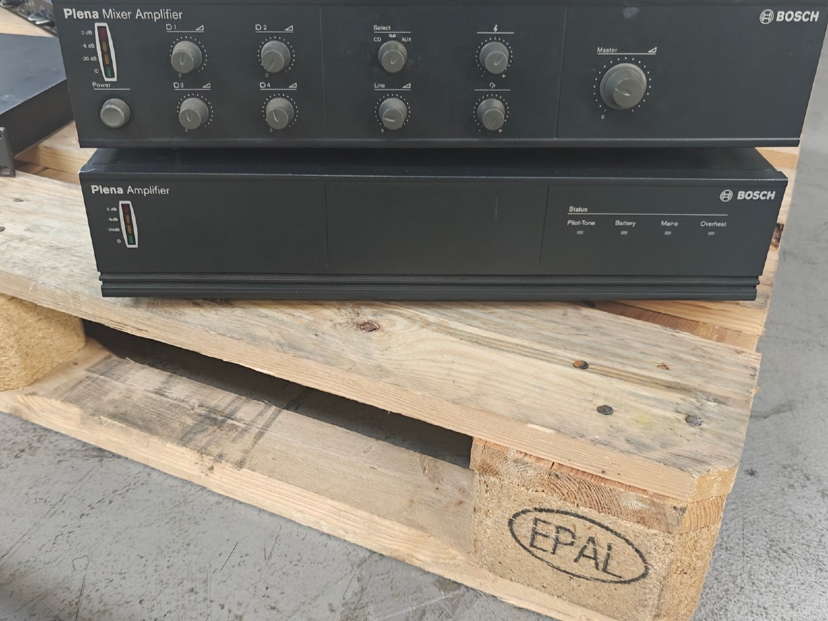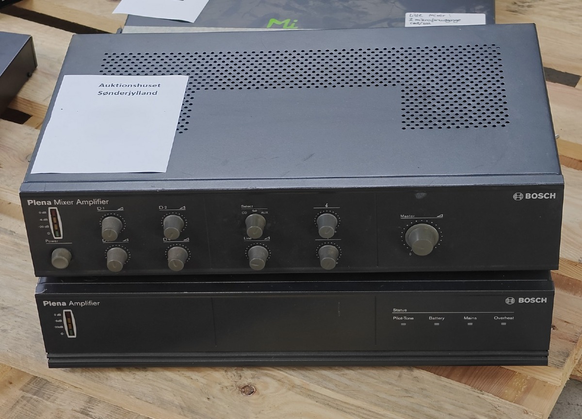 Plena mixer Amplifier & Plena Amplifier. Mrk Bosch. Model: Plena 60W Mixer Amplifier: LBB 1906/10. Plena 120W Power Amplifier: LBB 1930/20. Brugte.