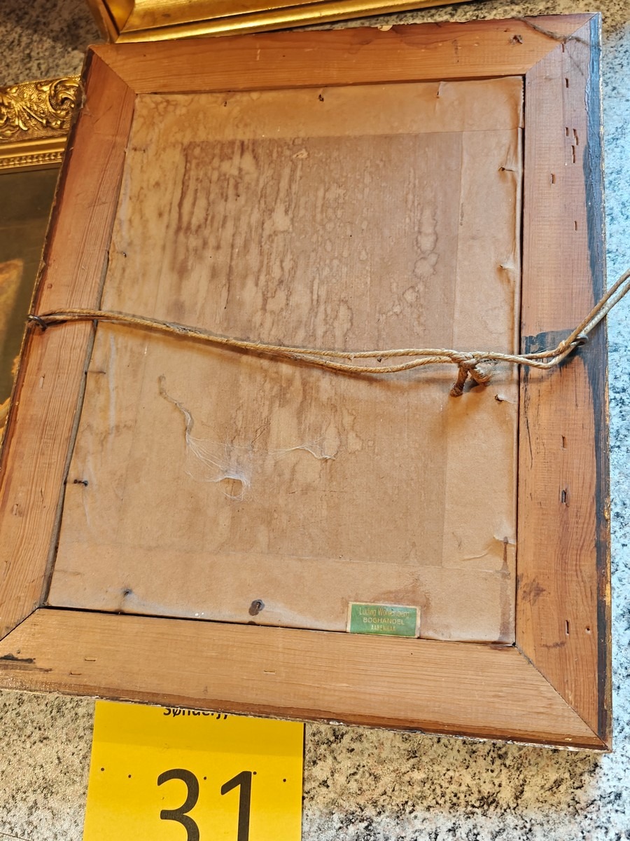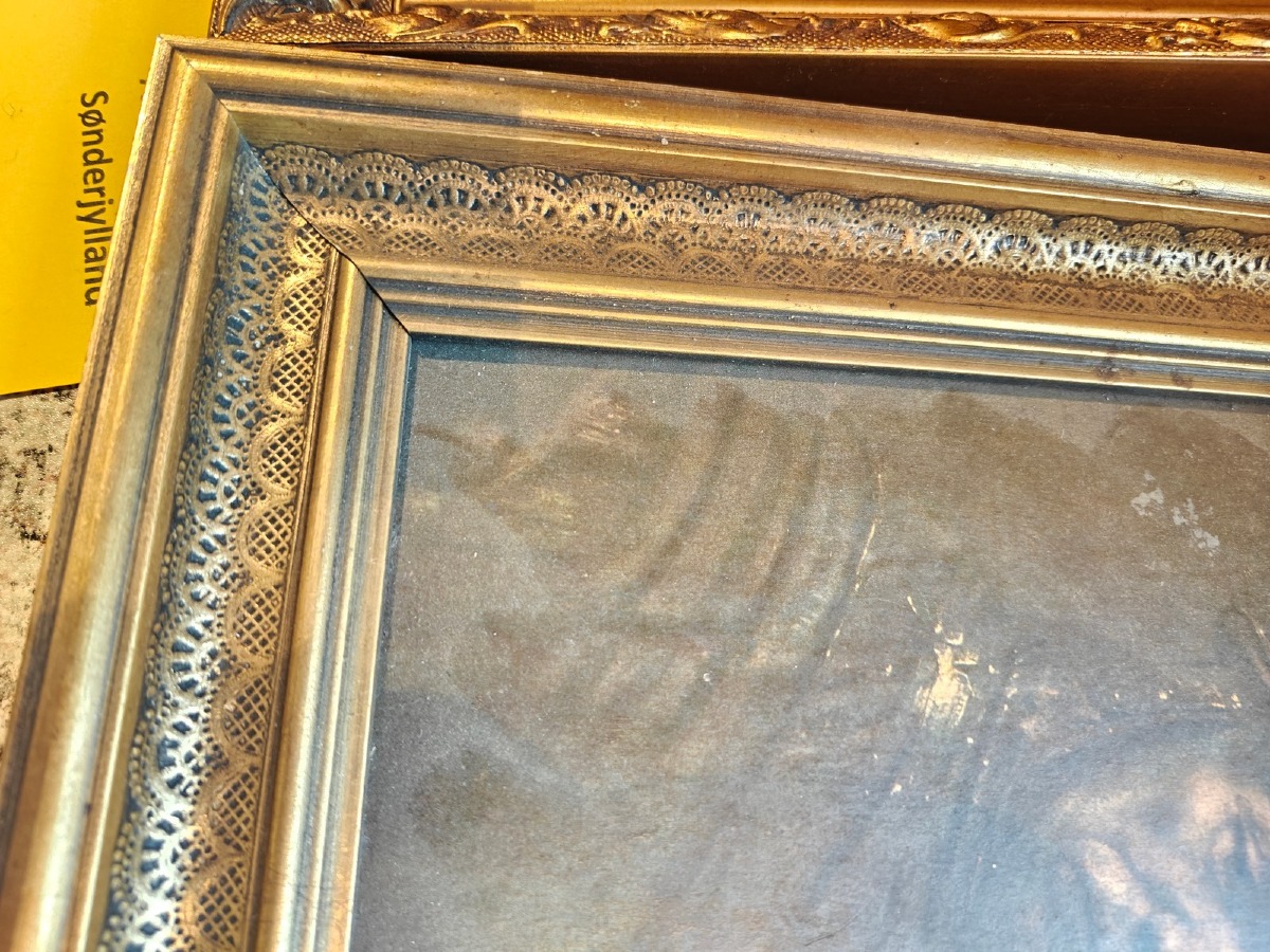 Ældre malerier i guldrammer 3 stk. Måler mellem 31 x  37 cm lang. I ok stand, trænger til rengøring. Fra dødsbo.