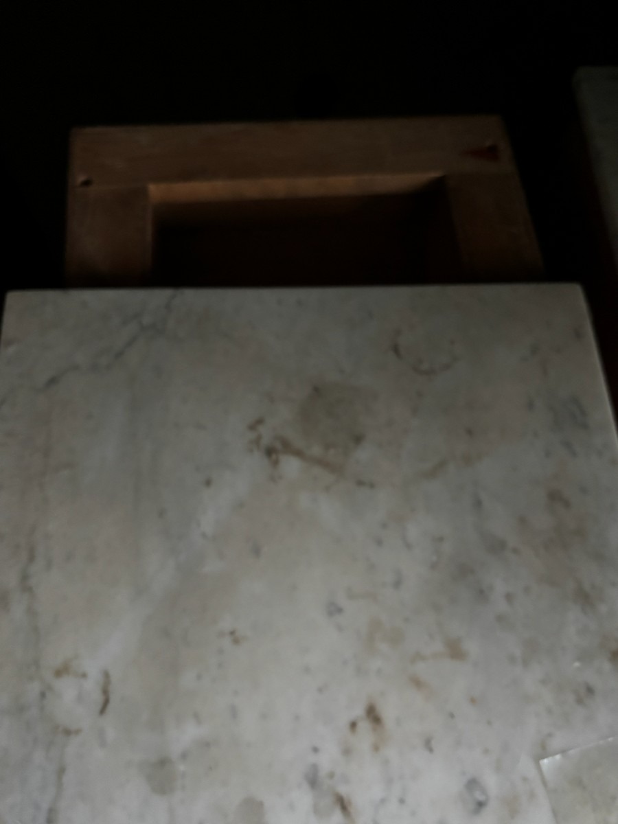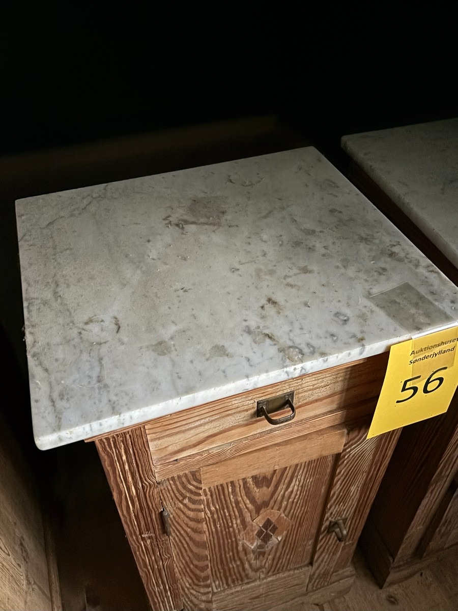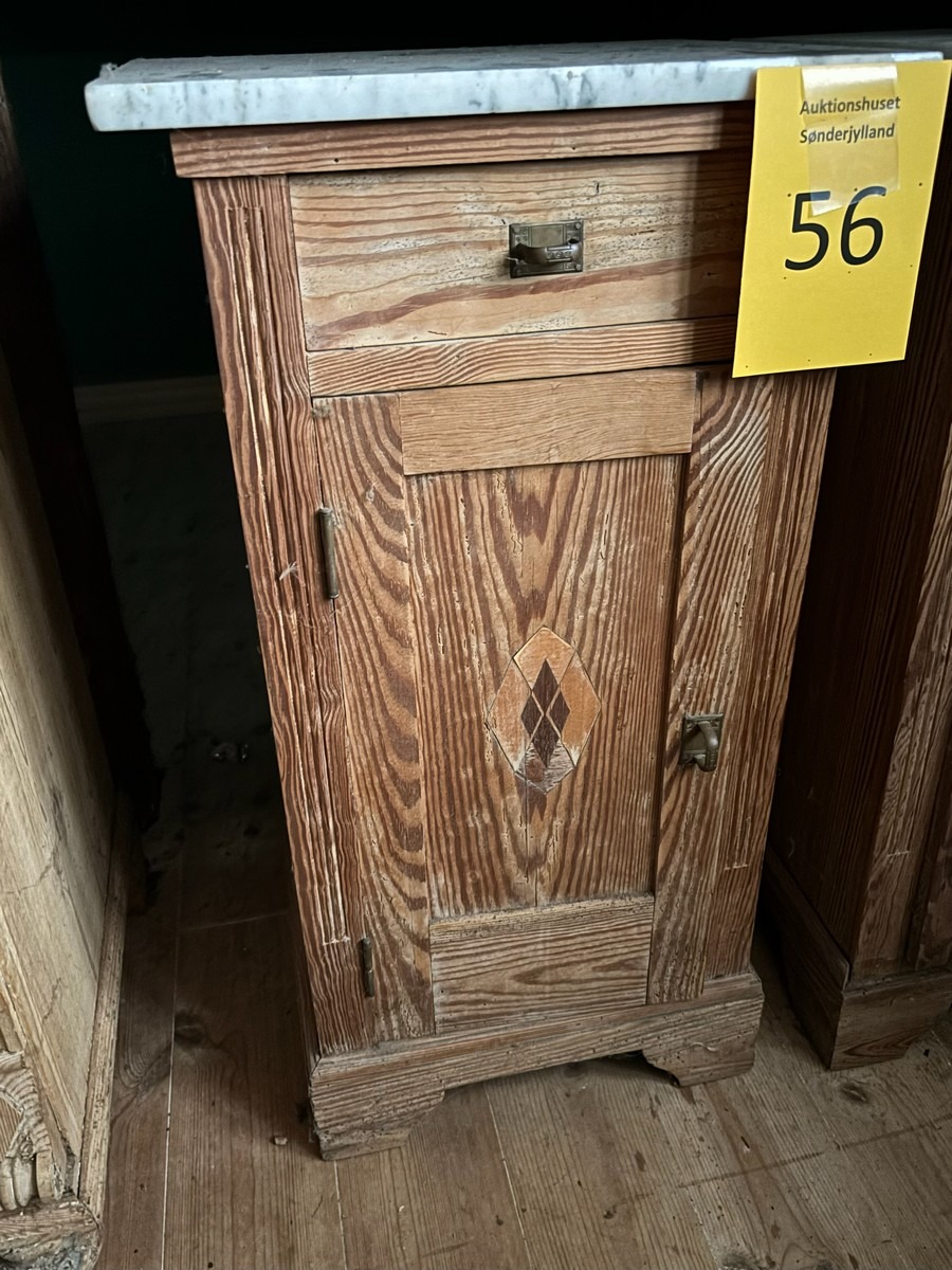 Antikke afsyret servanter med marmorpalder. Måler 89 cm høj. I ok stand, trænger til rengøring. Fra dødsbo.