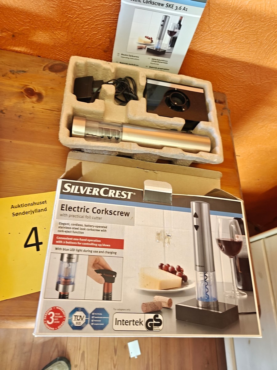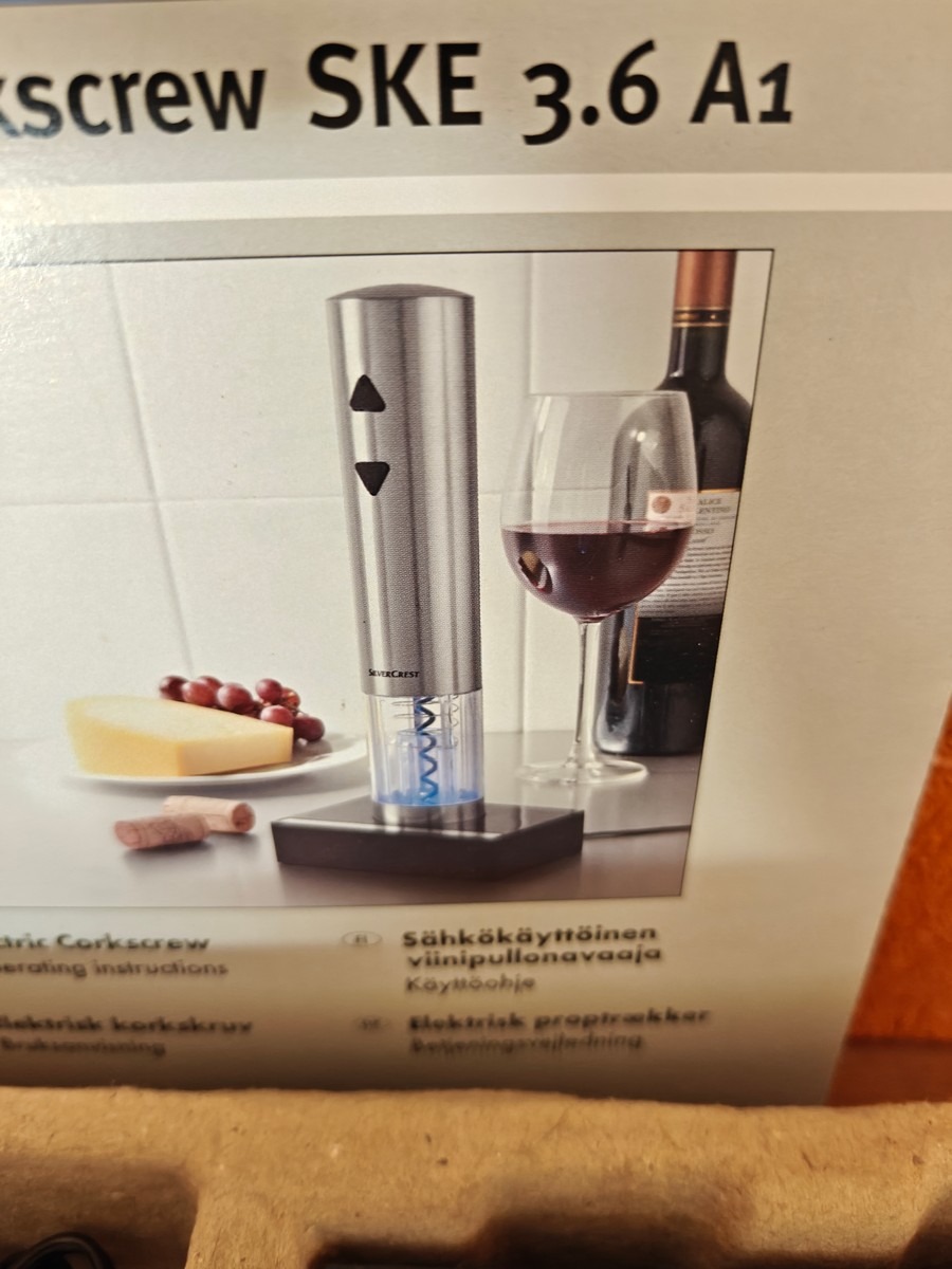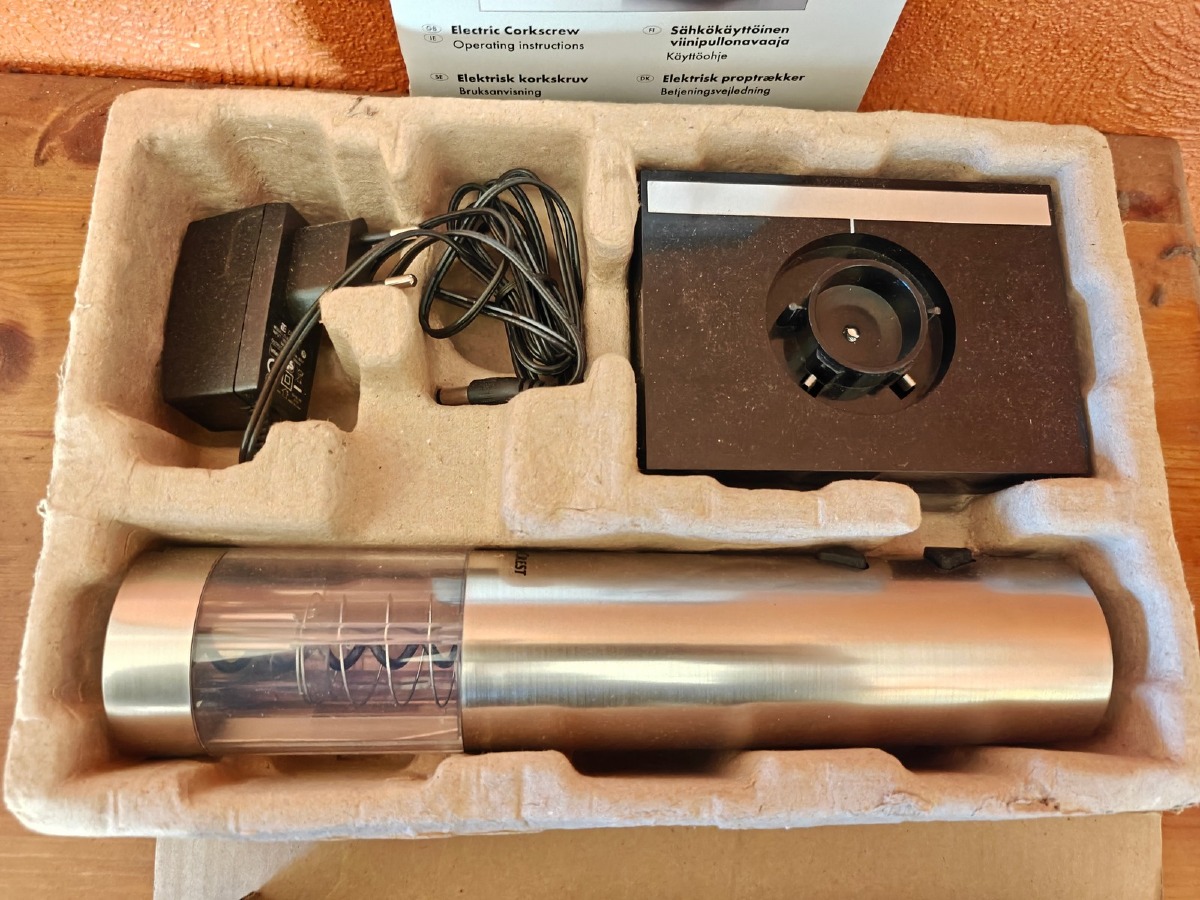 Elektronisk vinåbner. Ubrugt og i ok stand. Fra dødsbo.
