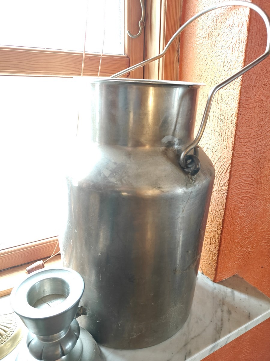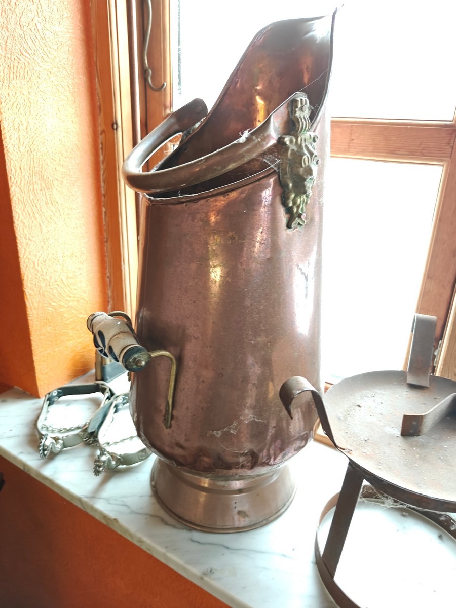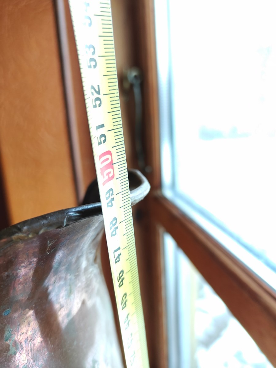 Kobber, messing og zink varer. Kobberkande måler 49 cm høj. I ok stand, trænger til rengøring. Fra dødsbo.