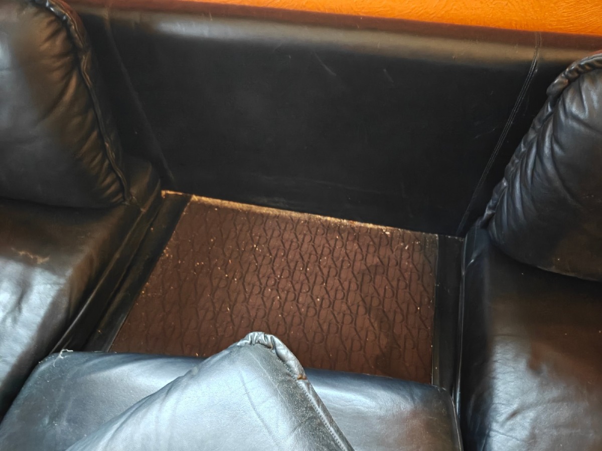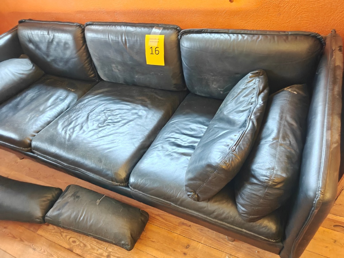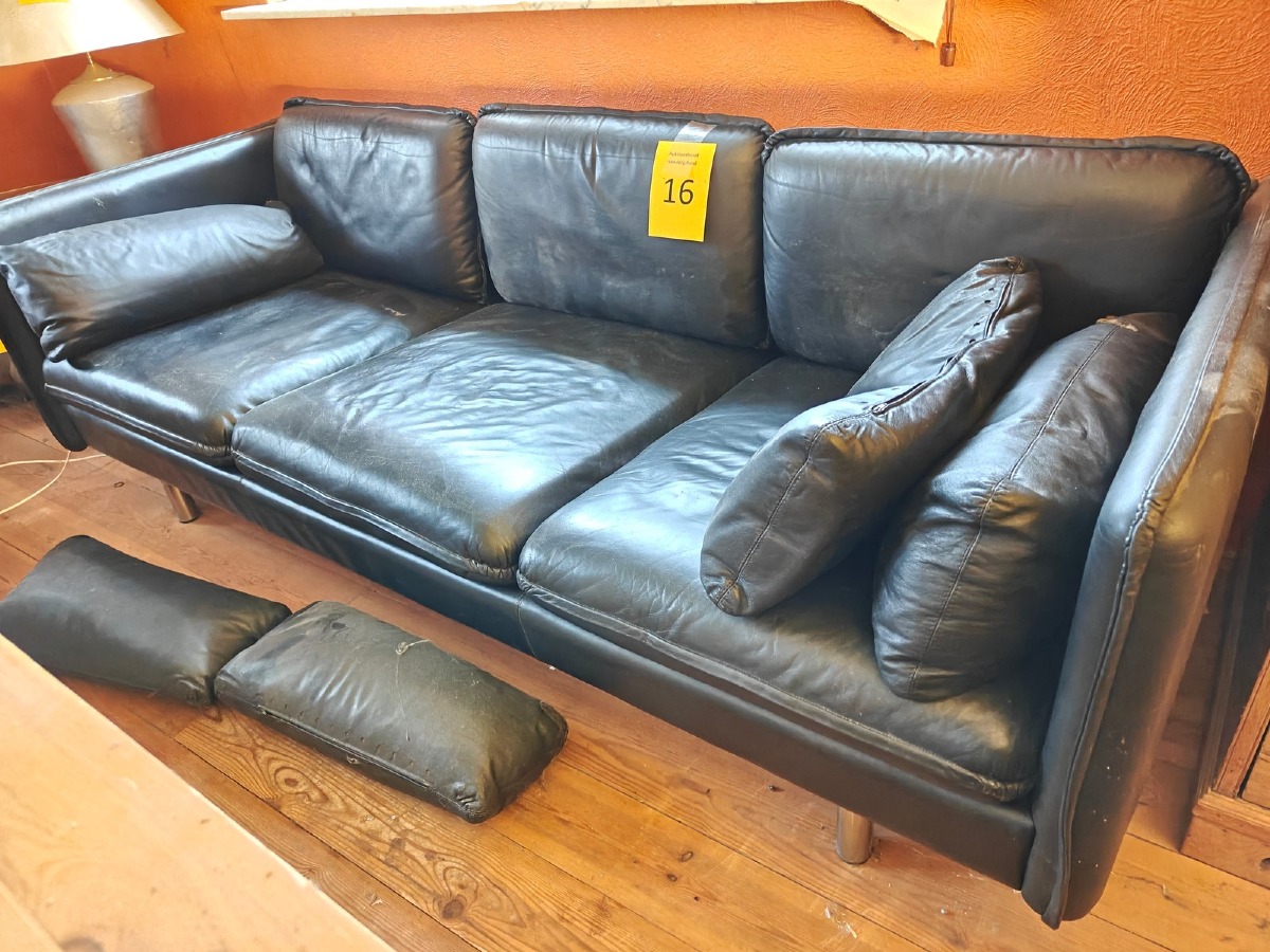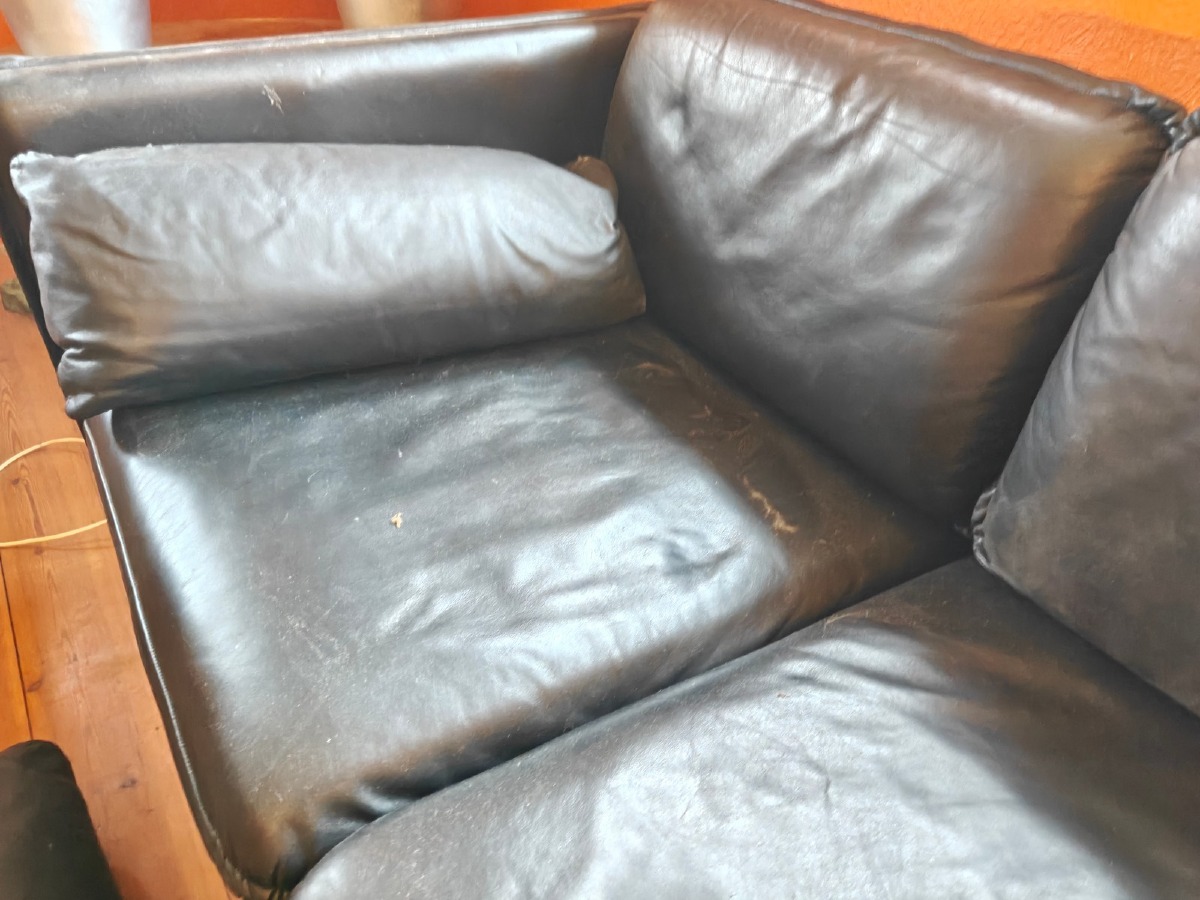 Dux læder sofa sort, Måler 210 lang og med en siddehøjde på ca 40 cm. Der medfølger ekstra læder puder. I pæn stand, trænger til rengøring. Fra dødsbo.
