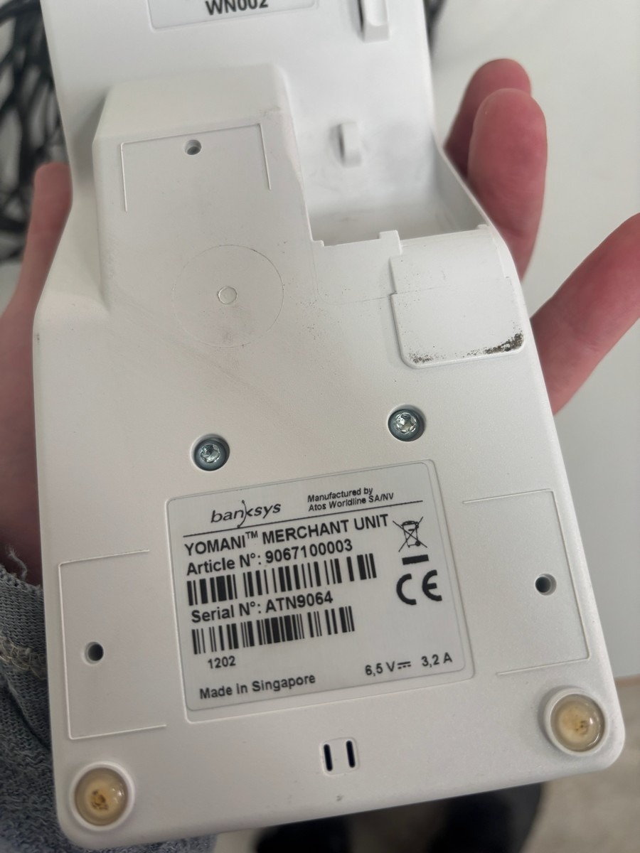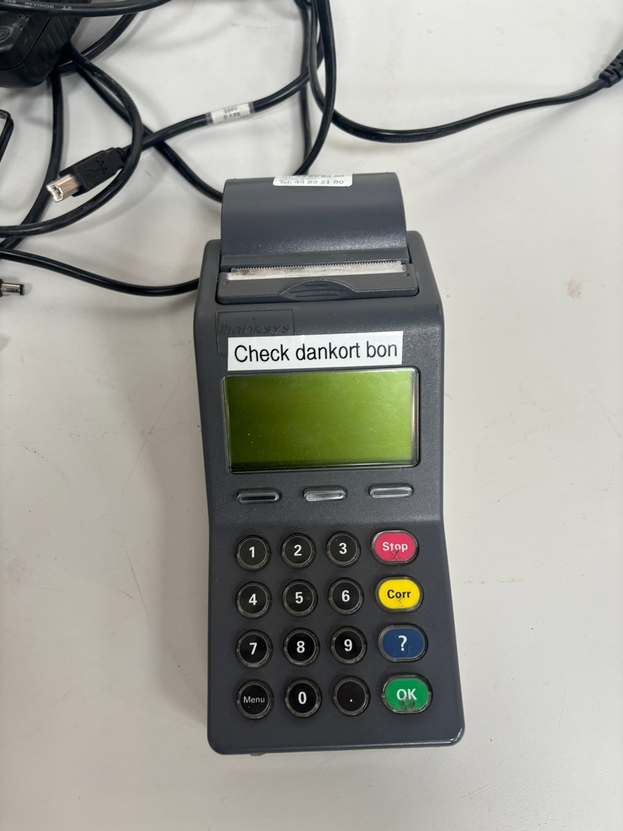 Banksys Yomani betalingsterminal + bonprinter (komplet sæt). Kun hardware.