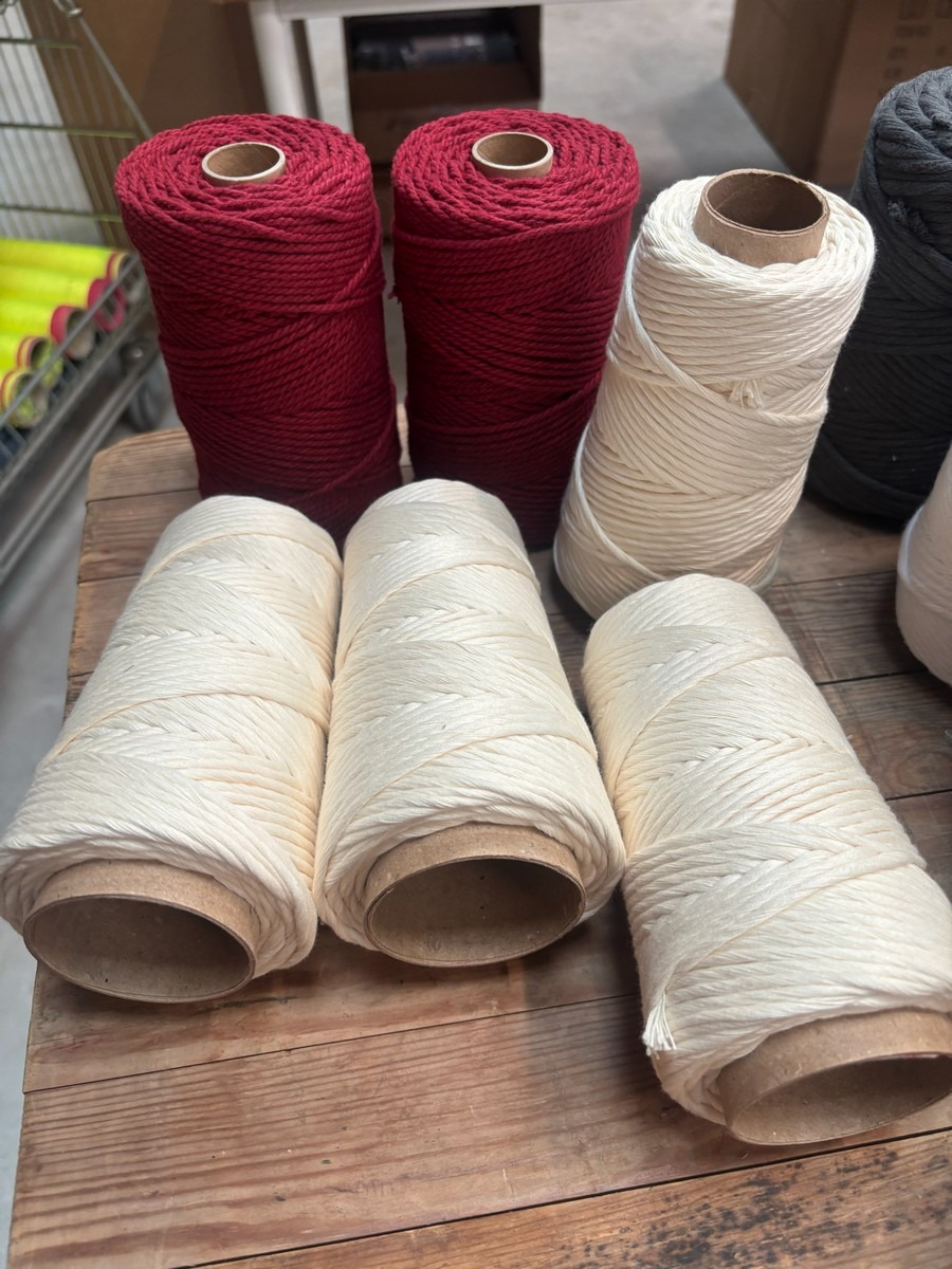 6 rl Macrame / Garn. 2 Forskellige farver og modeller. Ubrugt & god stand. Salg for advokat