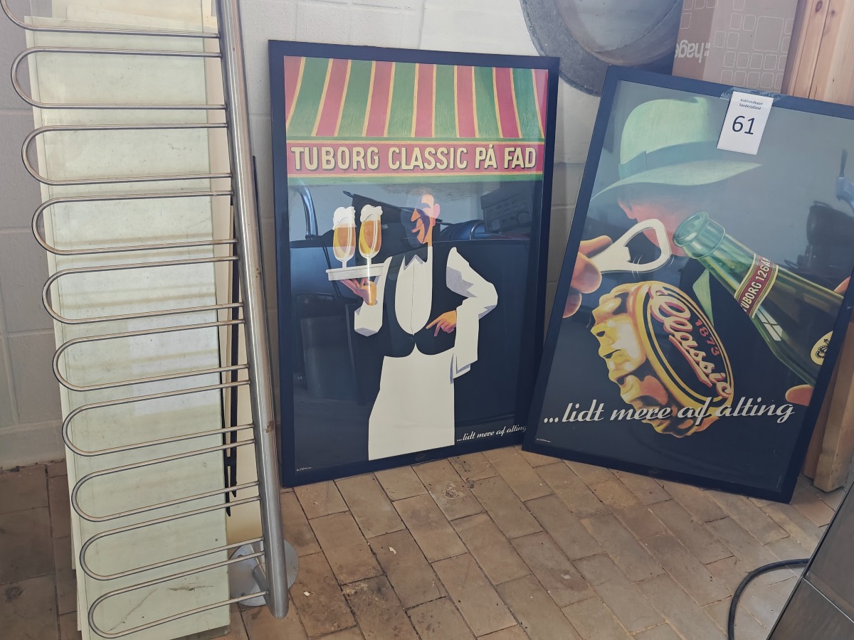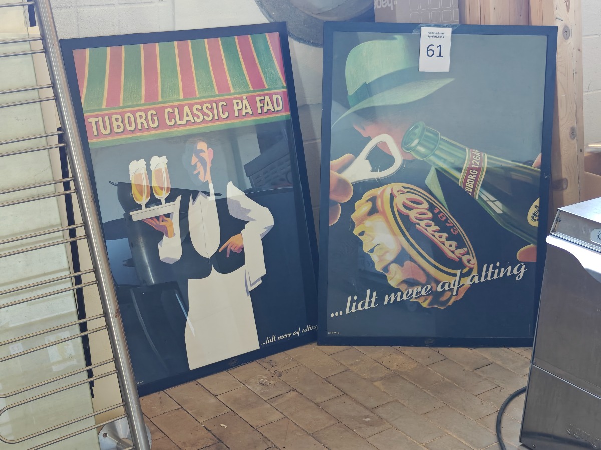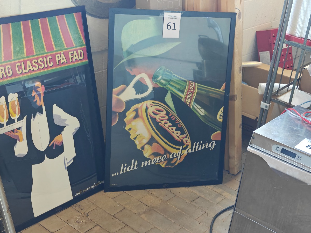 2 stk. reklameskilte i rammer. Mål: 76 x 105 cm. Brugte.
