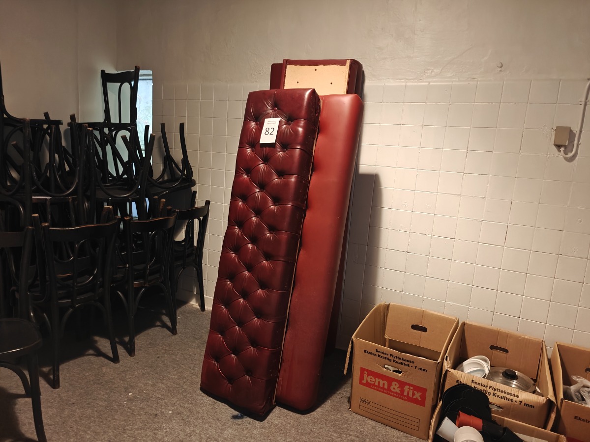 Dinér sofaer til montering på opbygning. 2 stk. sæder og 2 stk. rygge: 1 Sæt: Mål: 58 x 180 cm. + 48 x 180 cm. 1 sæt: Mål: 58 x 160 cm + 42 x 160 cm. Brugte. Er nedtaget.