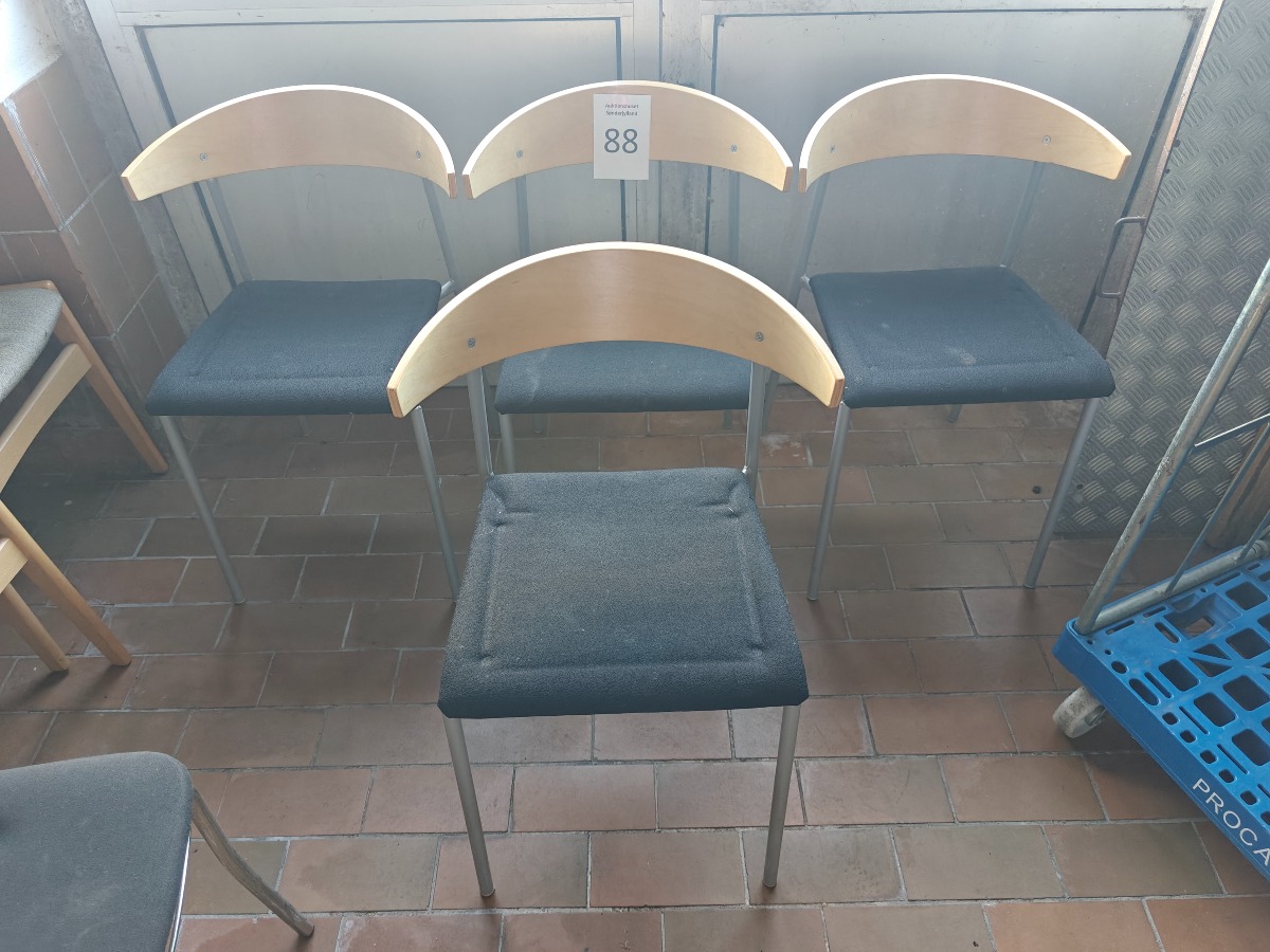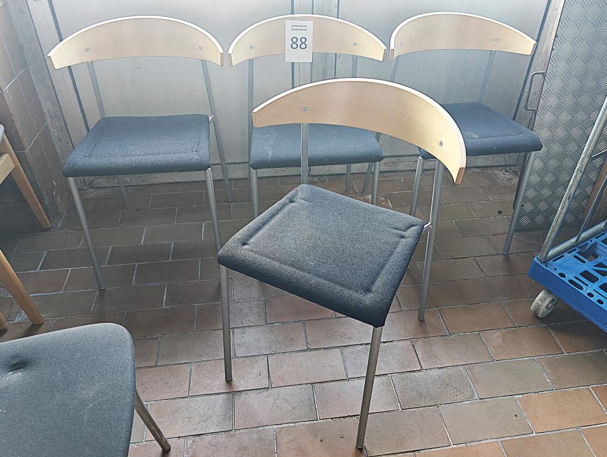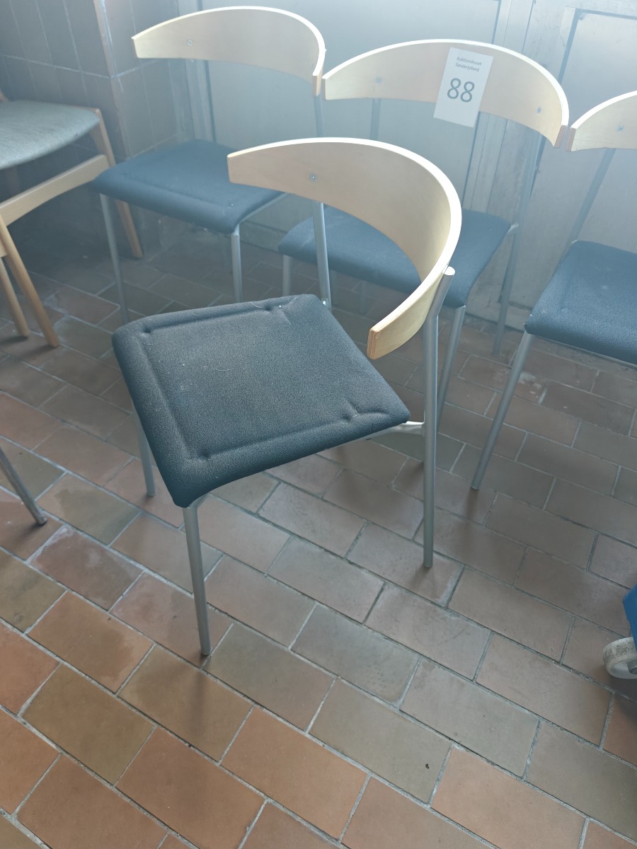 4 stk. mødestole. Mrk Kinnarps. Model: Riff. Med formstøbt finerryglæn og polstrede sæder. Brugte.