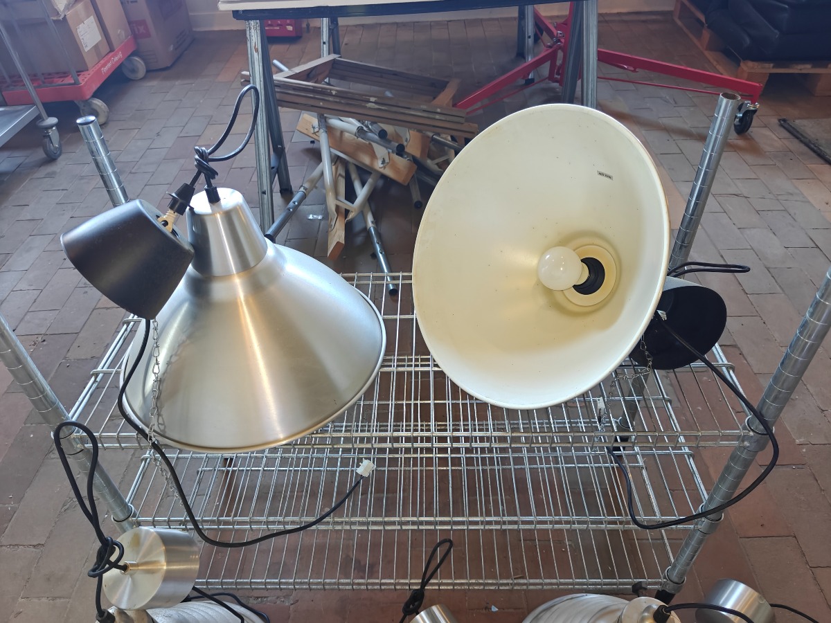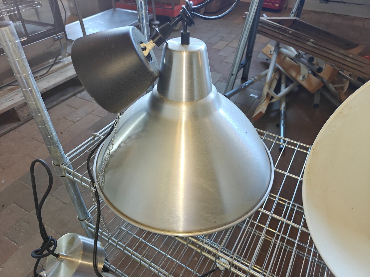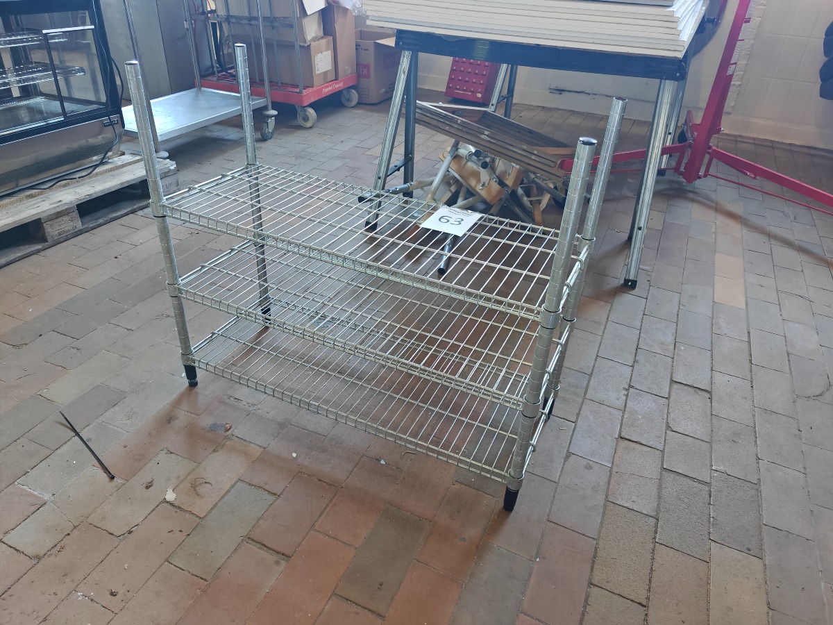 Trådreol m/3 hylder & 5 stk pendler i stål. 2 modeller. Brugte. Er nedtaget.