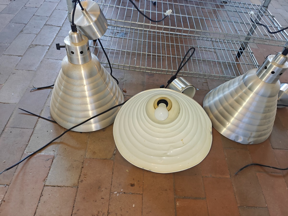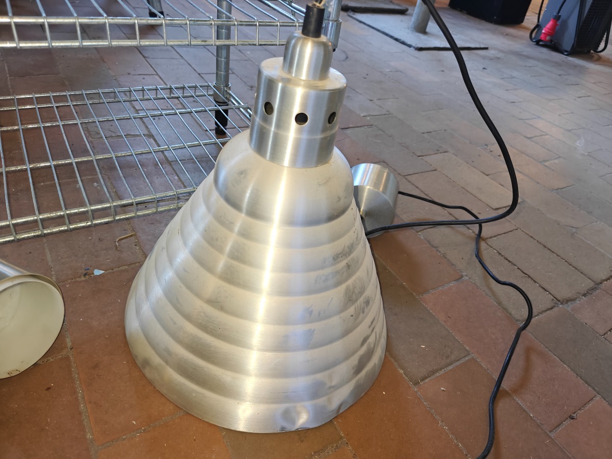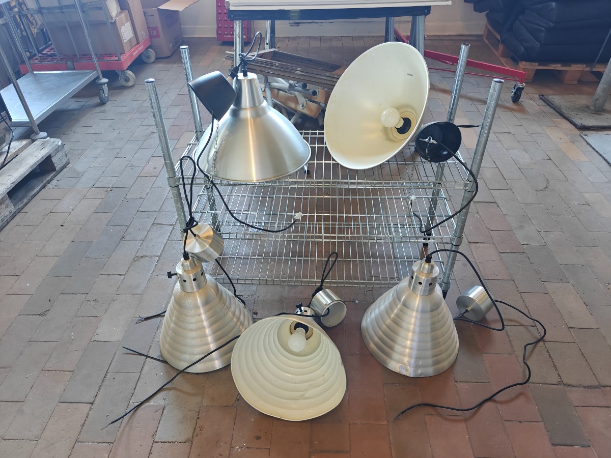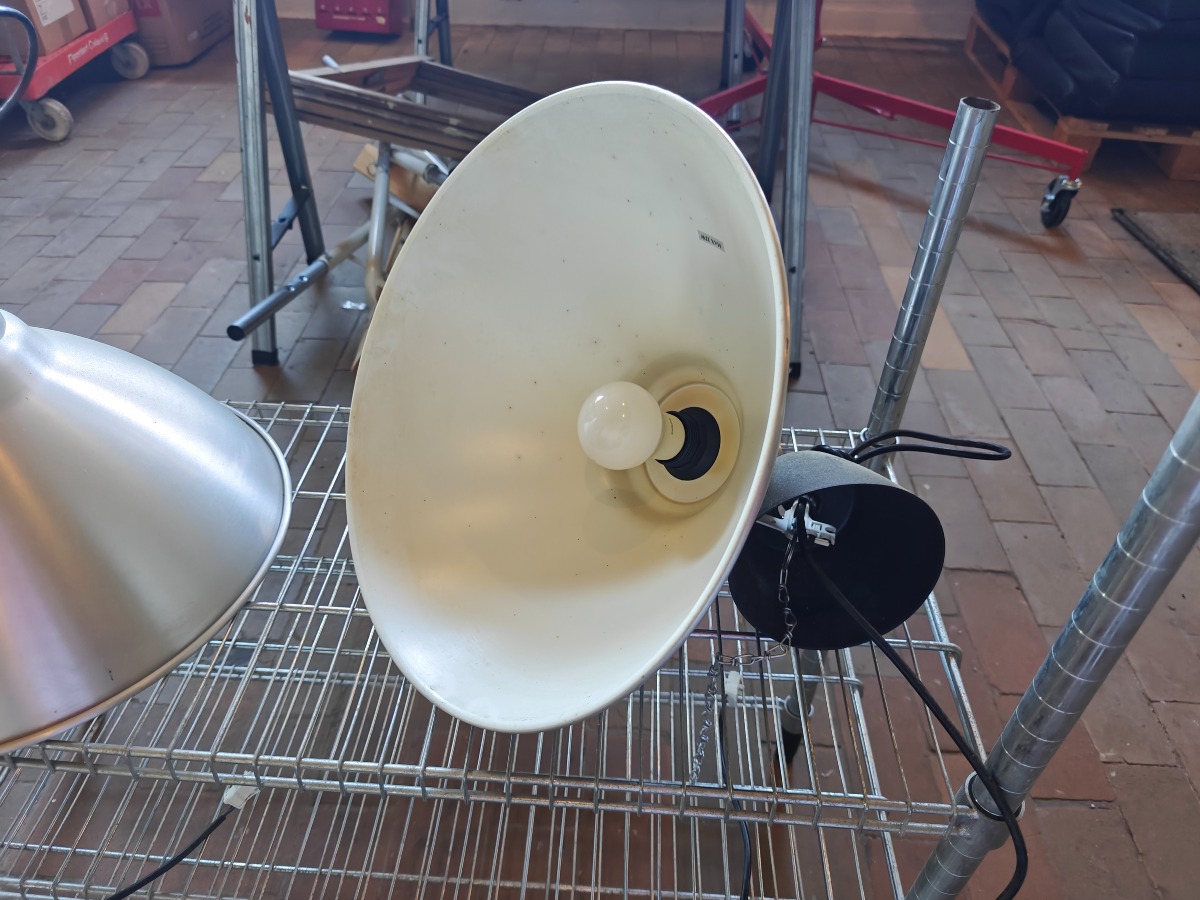 Trådreol m/3 hylder & 5 stk pendler i stål. 2 modeller. Brugte. Er nedtaget.