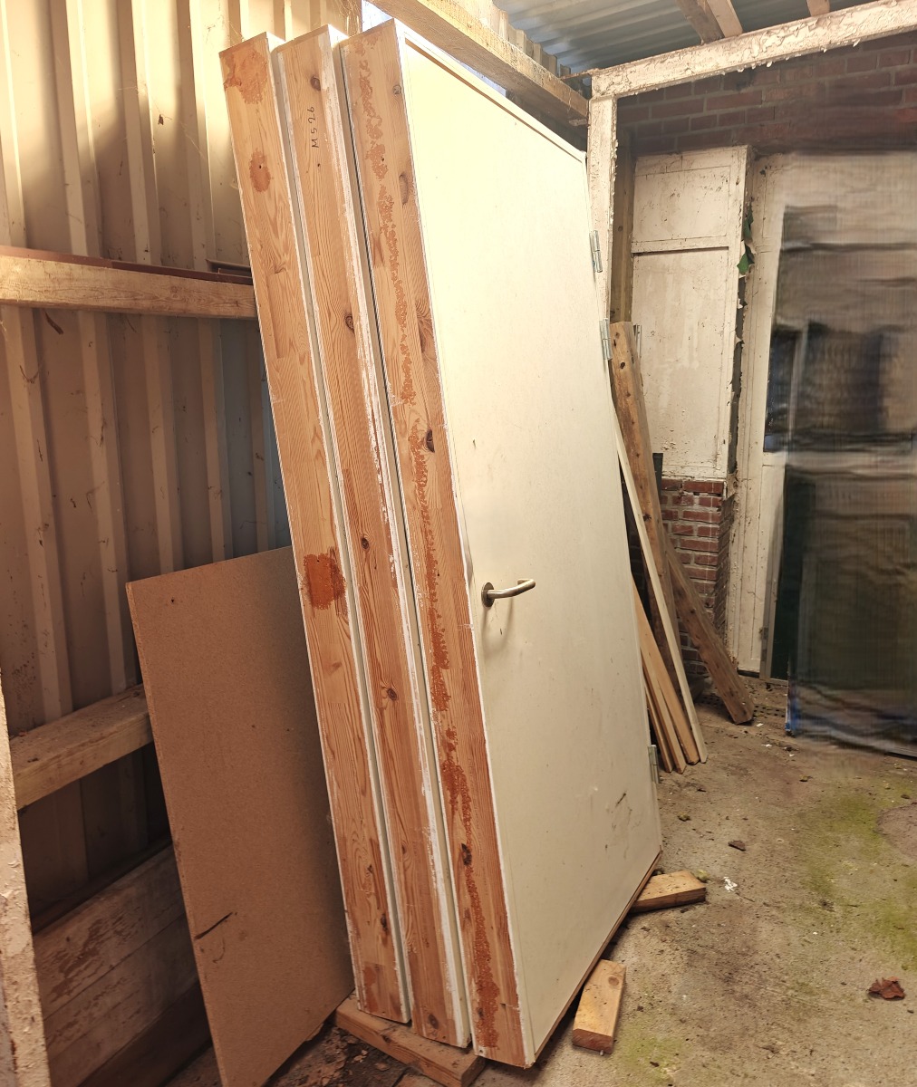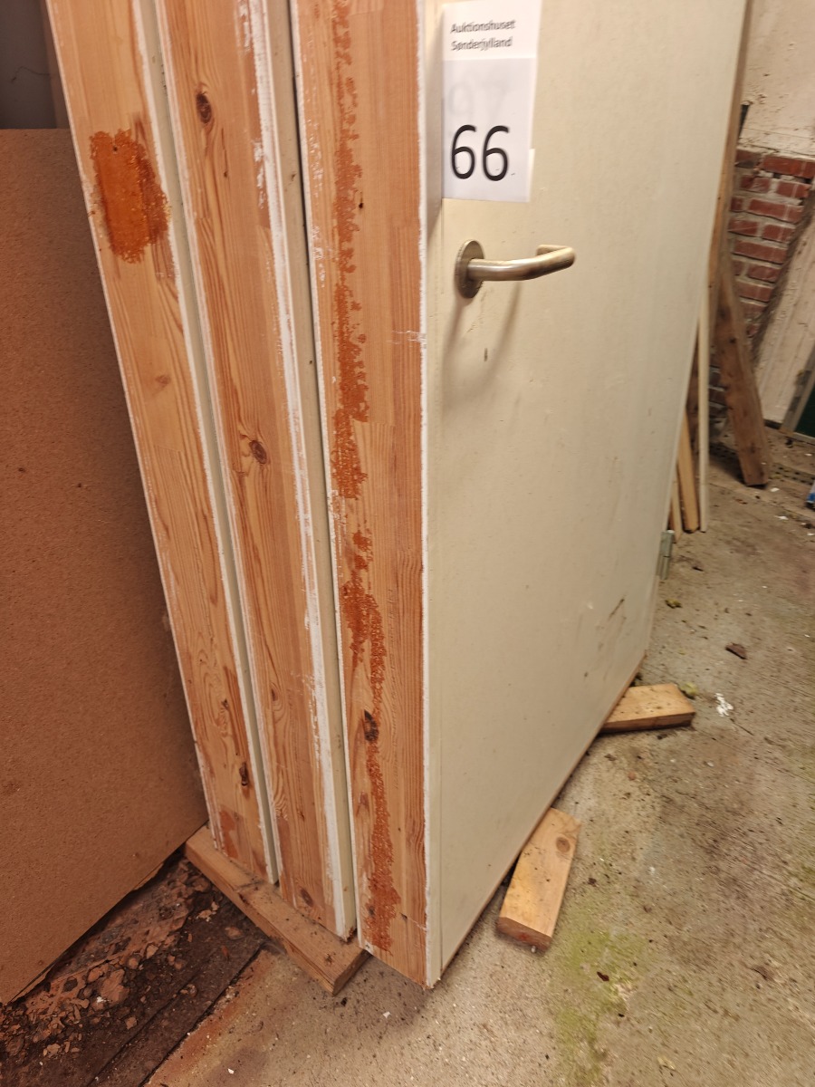 3 stk Branddøre med karm. Mrk: SweDoor - Jutlandia. DDK. Karm mål (udv mål): H: 210 cm. T: 13 cm. Dør mål: H: 203 cm. B: 92 cm. Brugte.