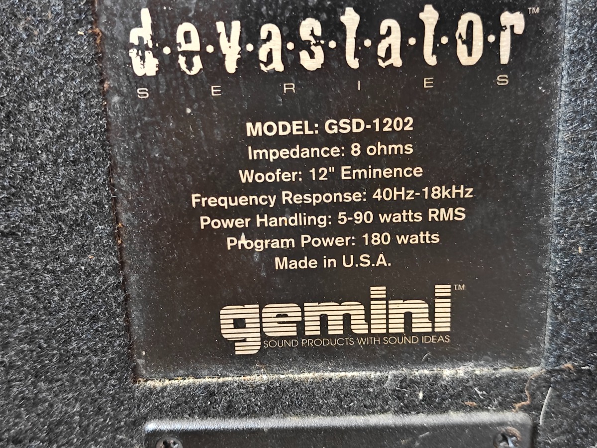 2 stk. Højttalere. Mrk Gemini. Devastator Series. Model: GSD-1202. Brugte.