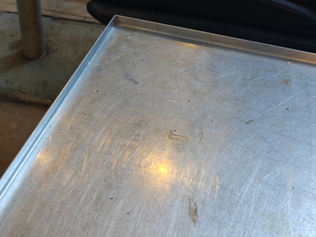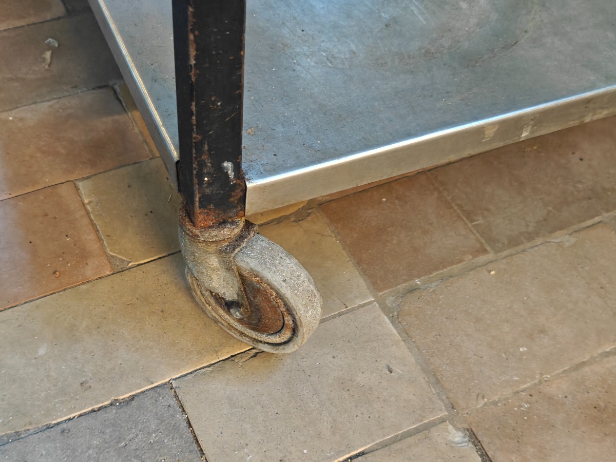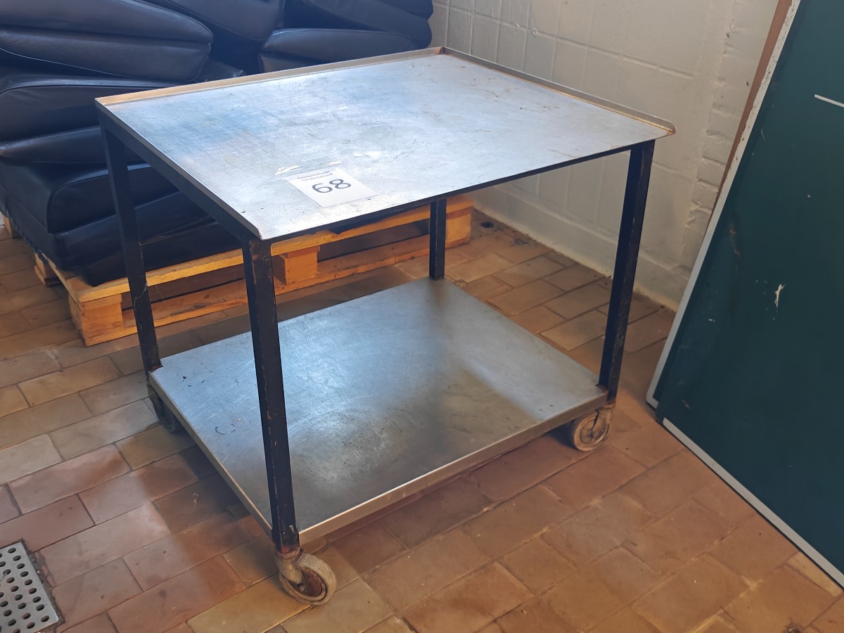 Rullebord med bordplade & hylde i rustfrit stål. Mål: 80 x 69 cm. H: 71 cm. Brugt.