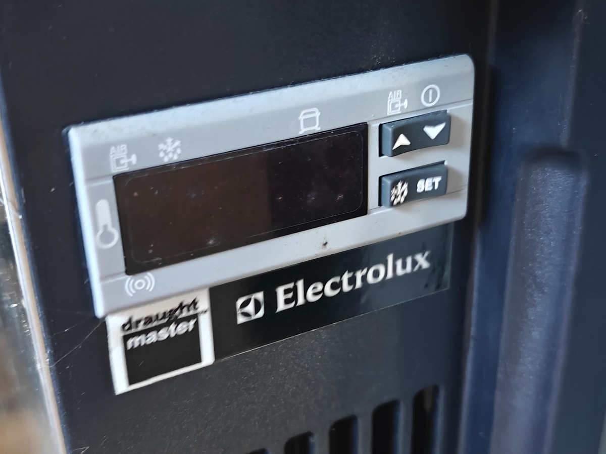 Mobilt fadølsanlæg. Mrk. Electrolux. Draught Master. Model: DMPSTSSW. Type: ACE1 ST. Med 1 tappehane. H: 94 cm. B: 52 cm. D: 60 cm. Brugt.