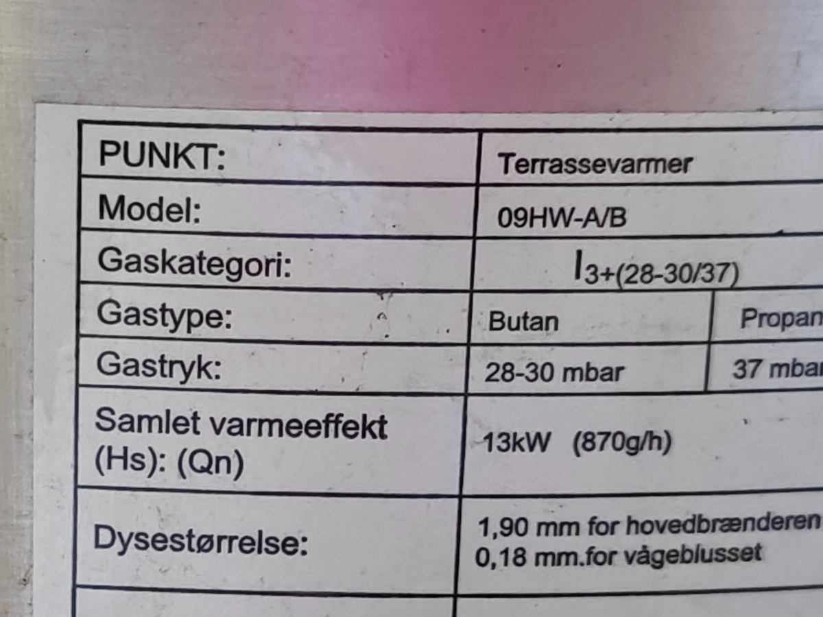 2 stk terassevarmere til gas. Model: 09HW-A/B. UDEN gasflasker. Brugte.