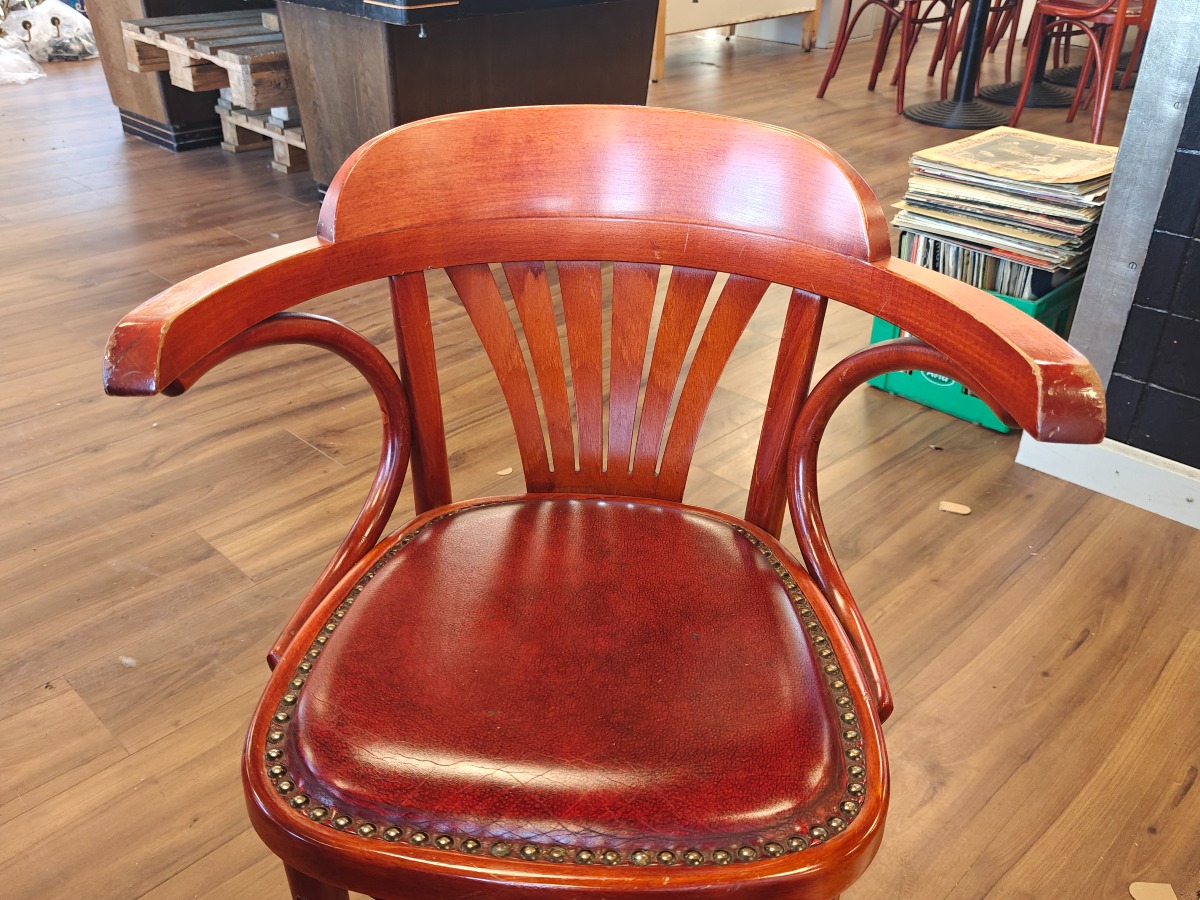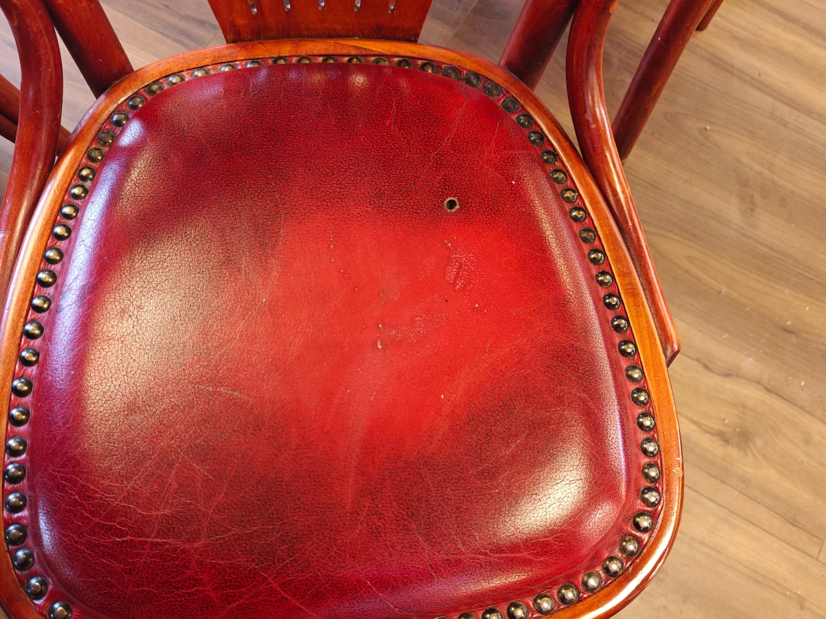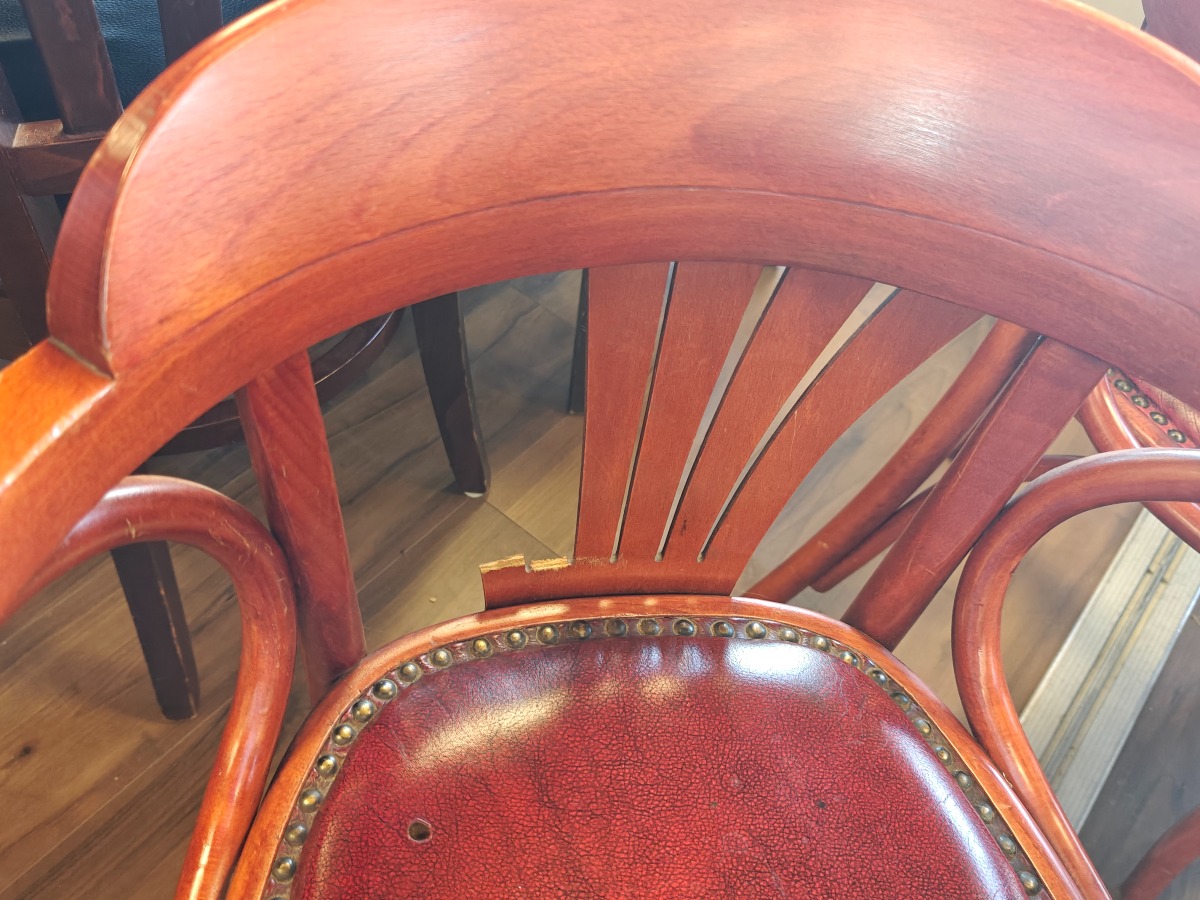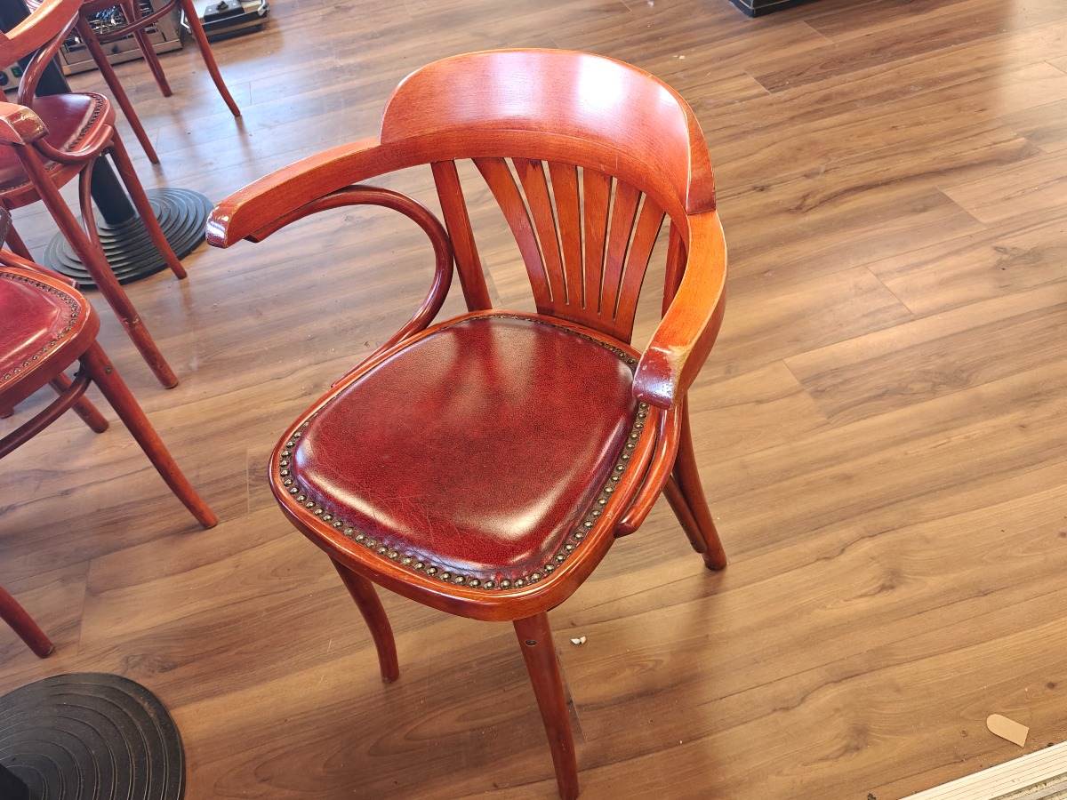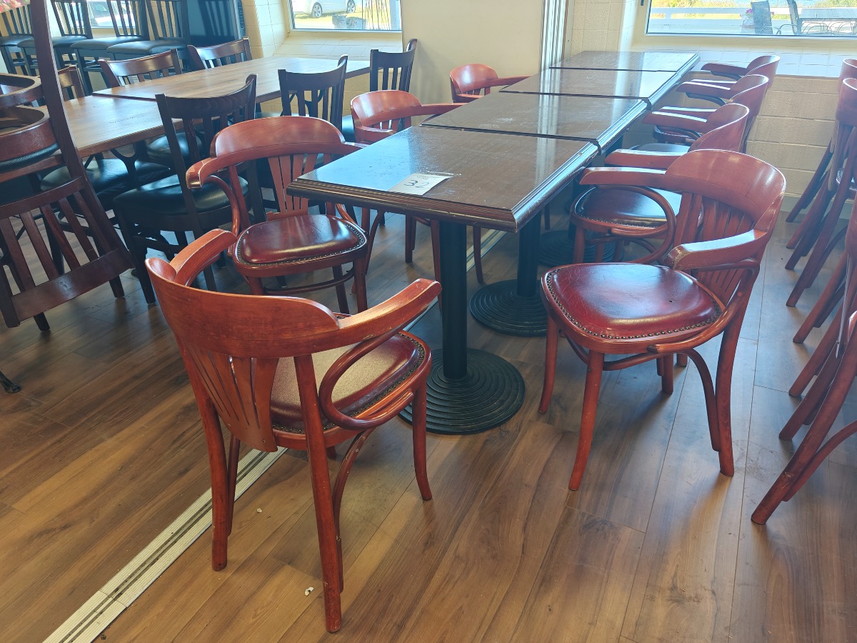 4 stk Cafeborde & 8 stole. Borde: Mål: 60 x 60 x 74 cm. Stole m/armlæn og polstrede sæder. Alm brugsspor.