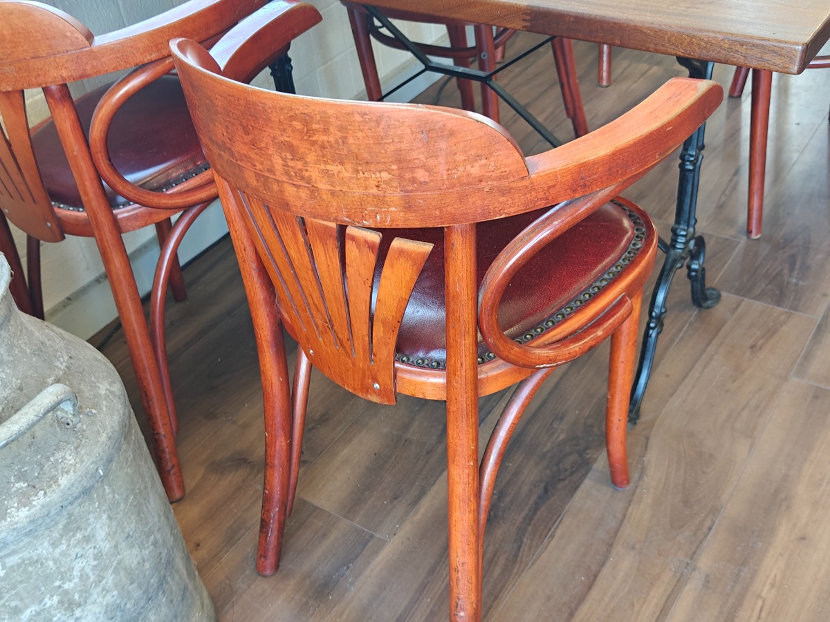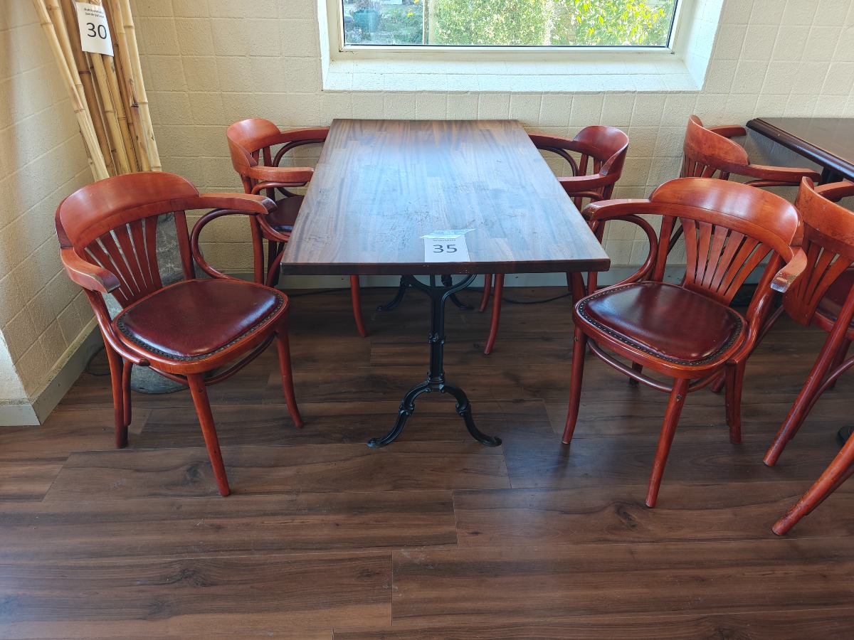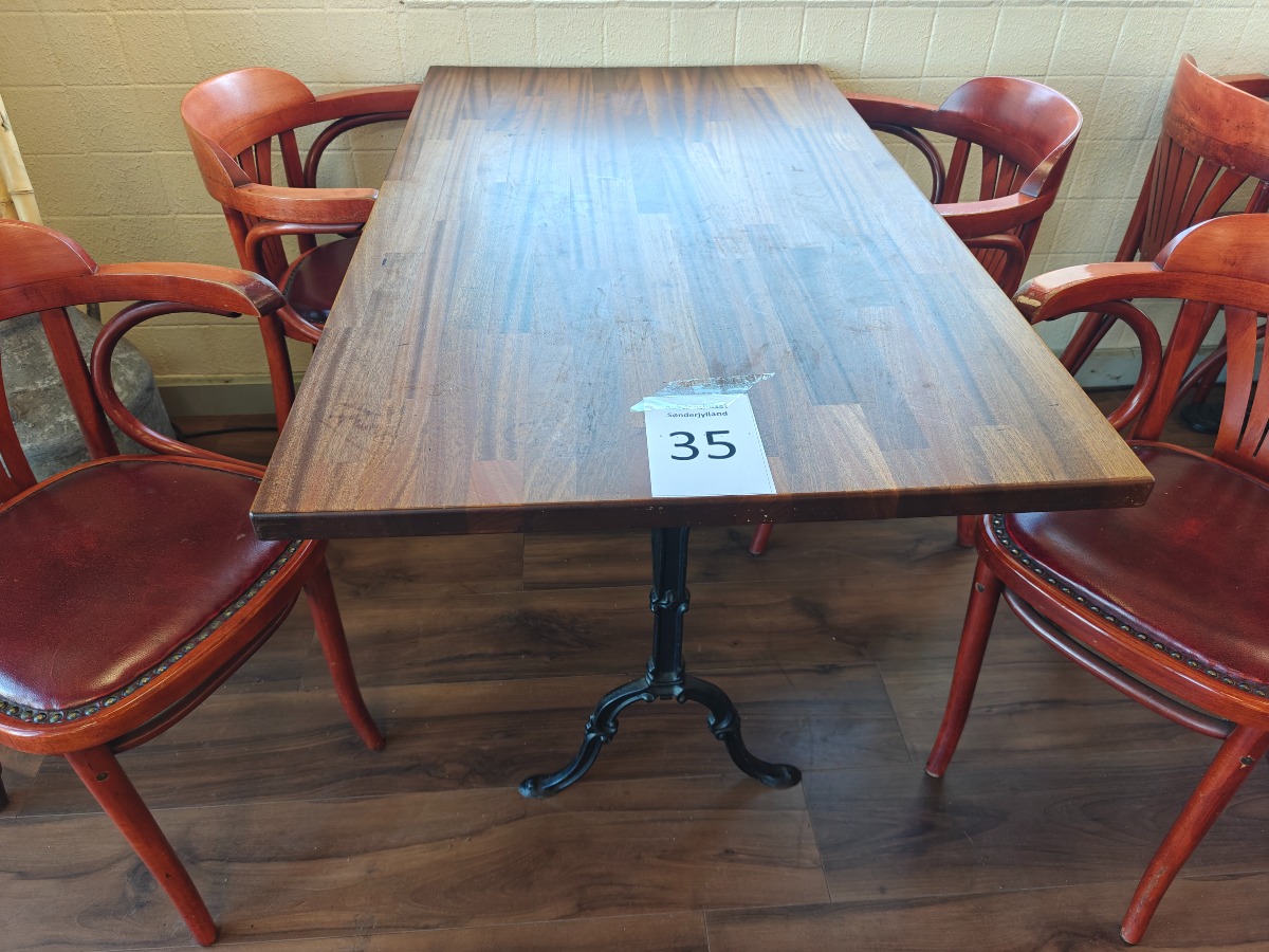 Borde med massive træbordplader + 8 stole