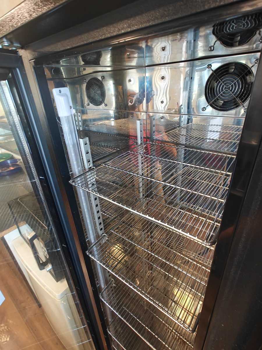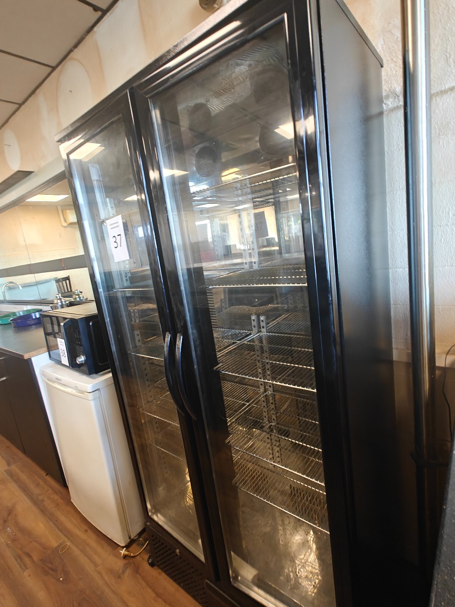 Display køleskab med 2 låger. Mål: B: 90 cm. D: 51 cm. H: 182 cm. Virker.