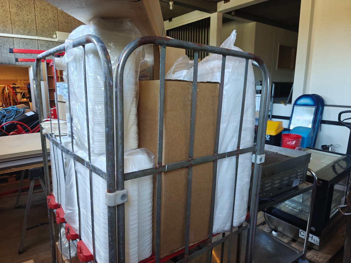 Parti engangsservice / emballage til fastfood mm. Bur medfølger ikke.