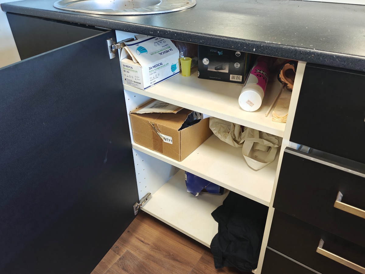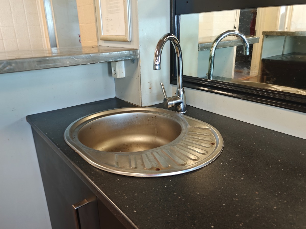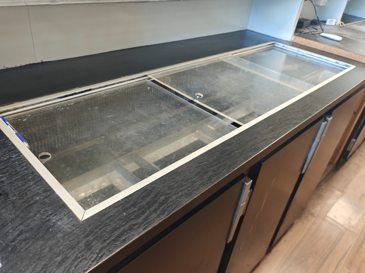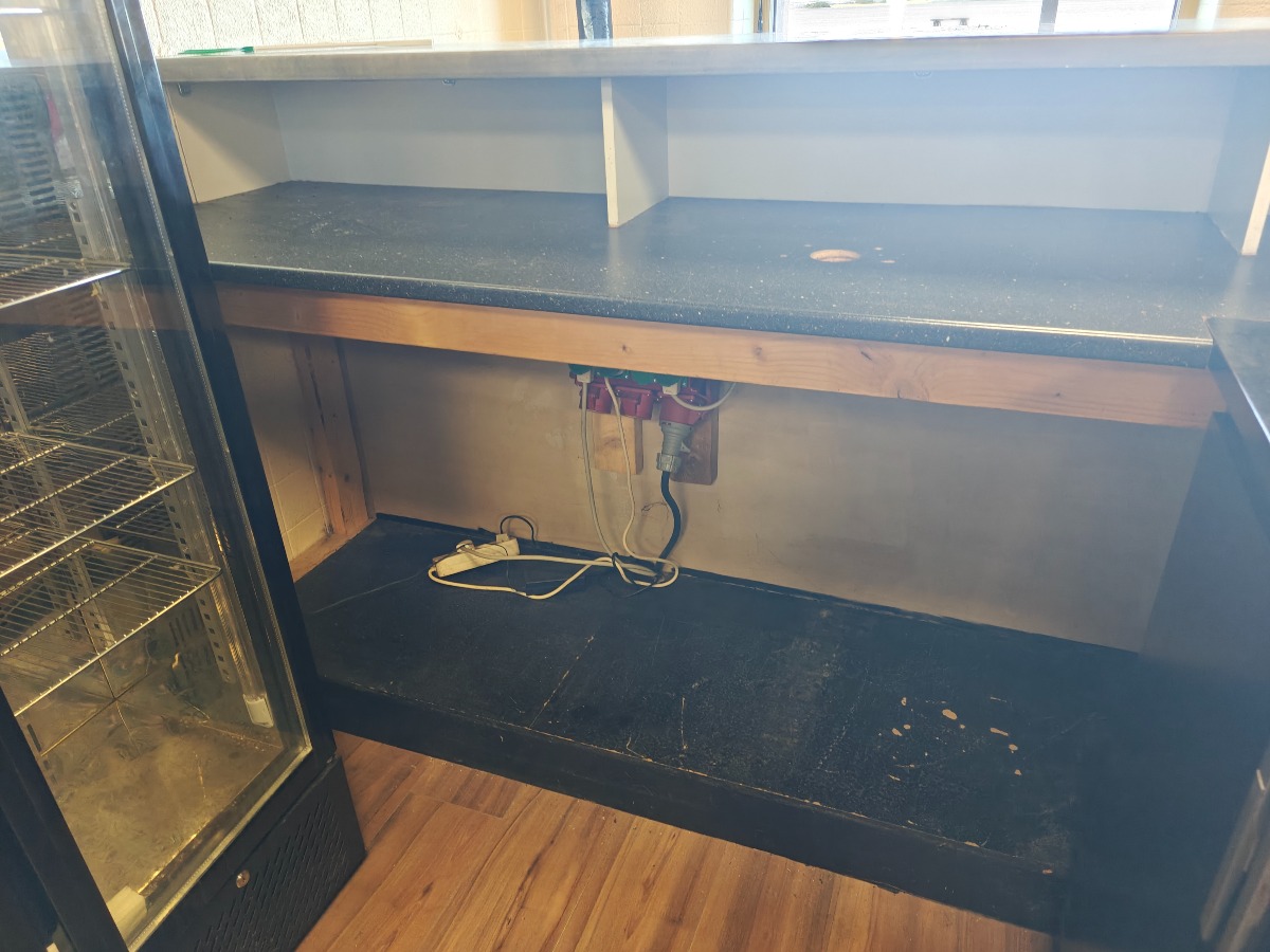 Stor bar med indbygget køler, vask, skabe med indhold mm.