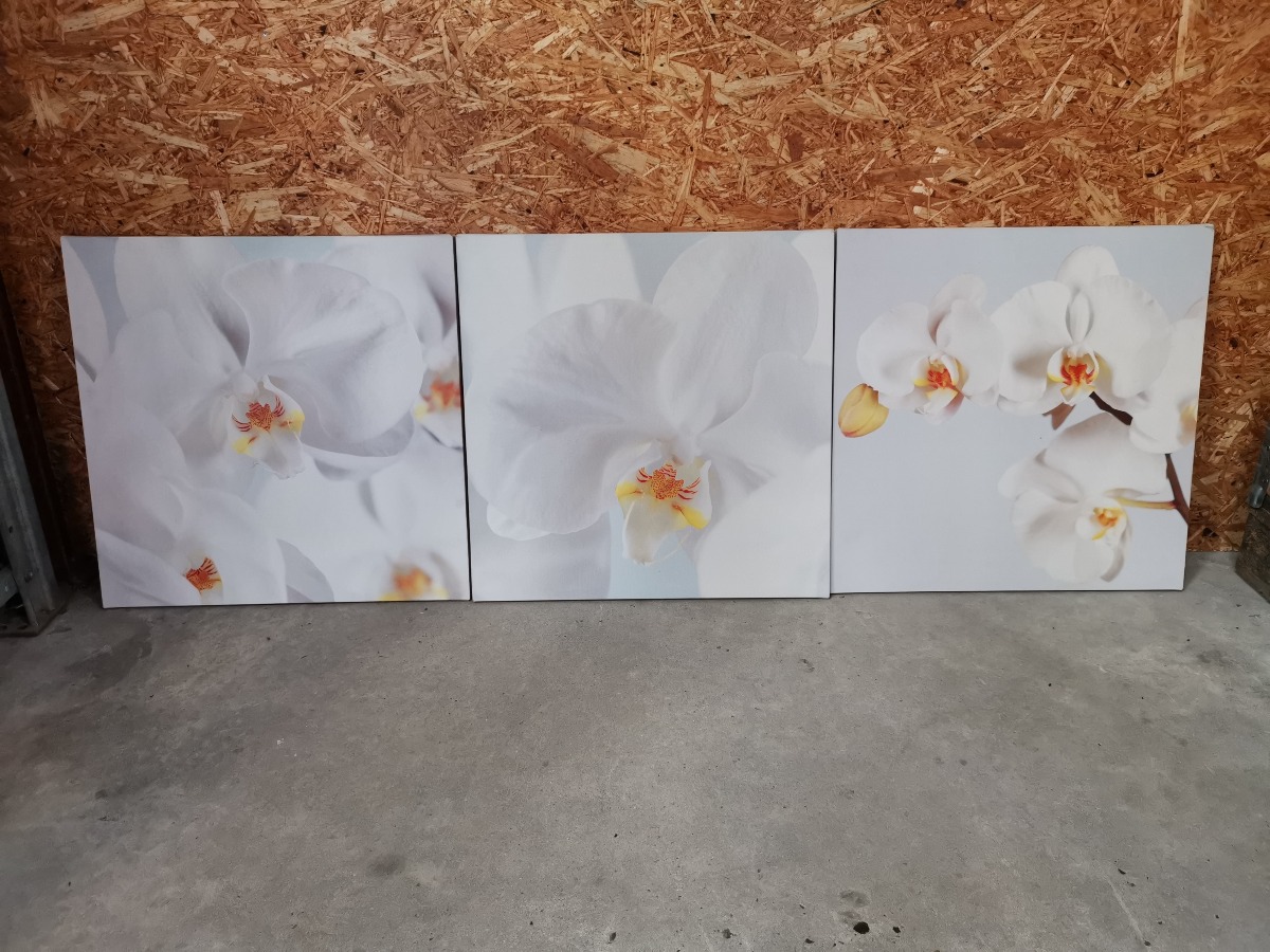 3 stk. fototryk med orkideer. Mål: 56 x 56 cm. Fra IKEA's sortiment.