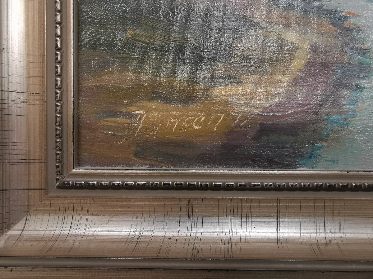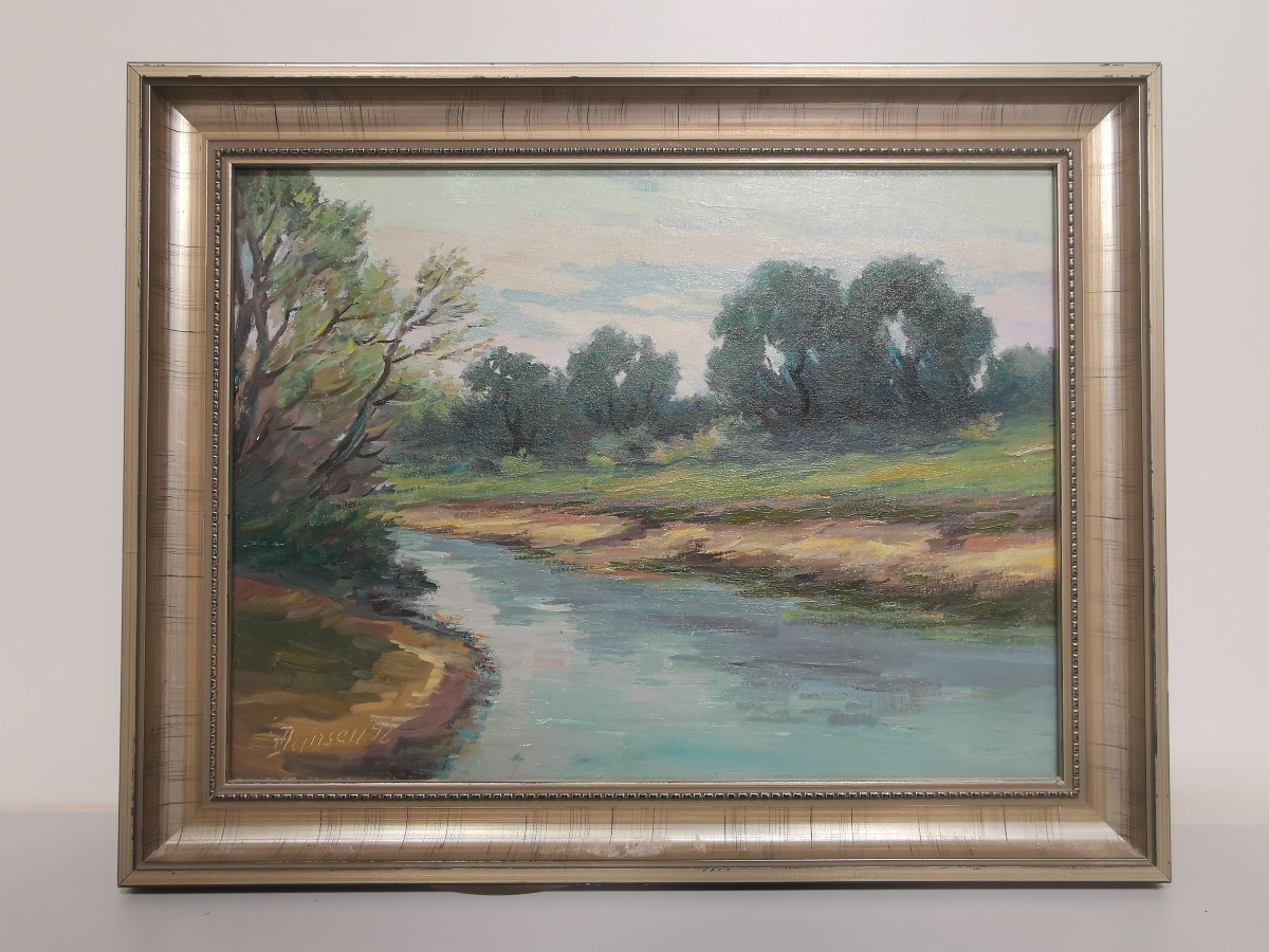 Maleri med motiv af vandløb. Olie på lærred. Signeret H. Jansen. 37 x 47 cm.