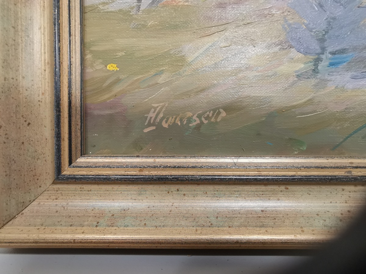 Maleri med motiv af vandløb. Olie på lærred. Signeret H. Jansen. 36 x 46 cm.