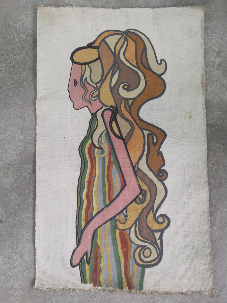 Maleri med stående kvinde. Olie på lærred. 65 x 38 cm. Uindrammet.