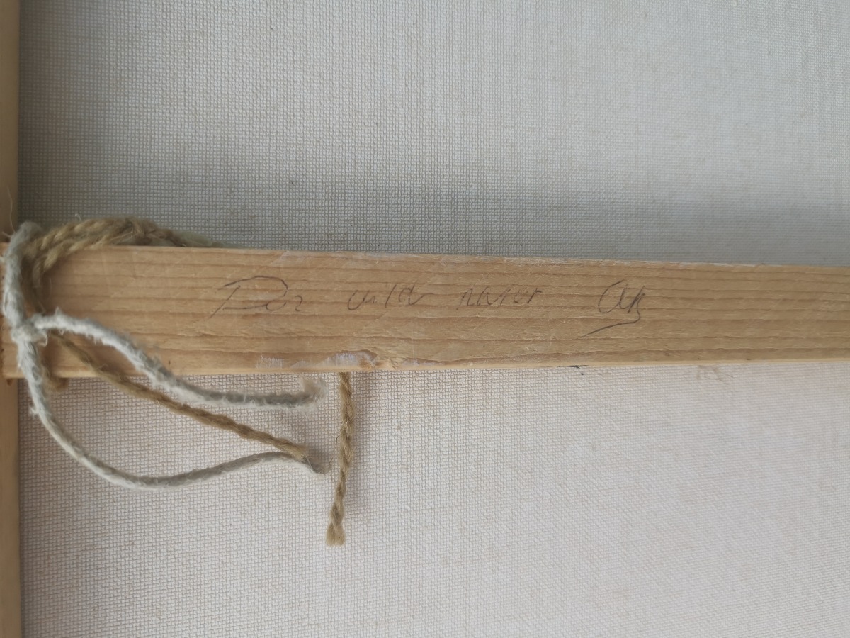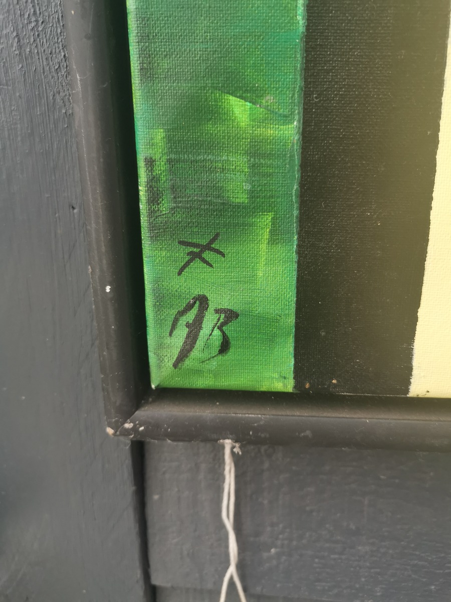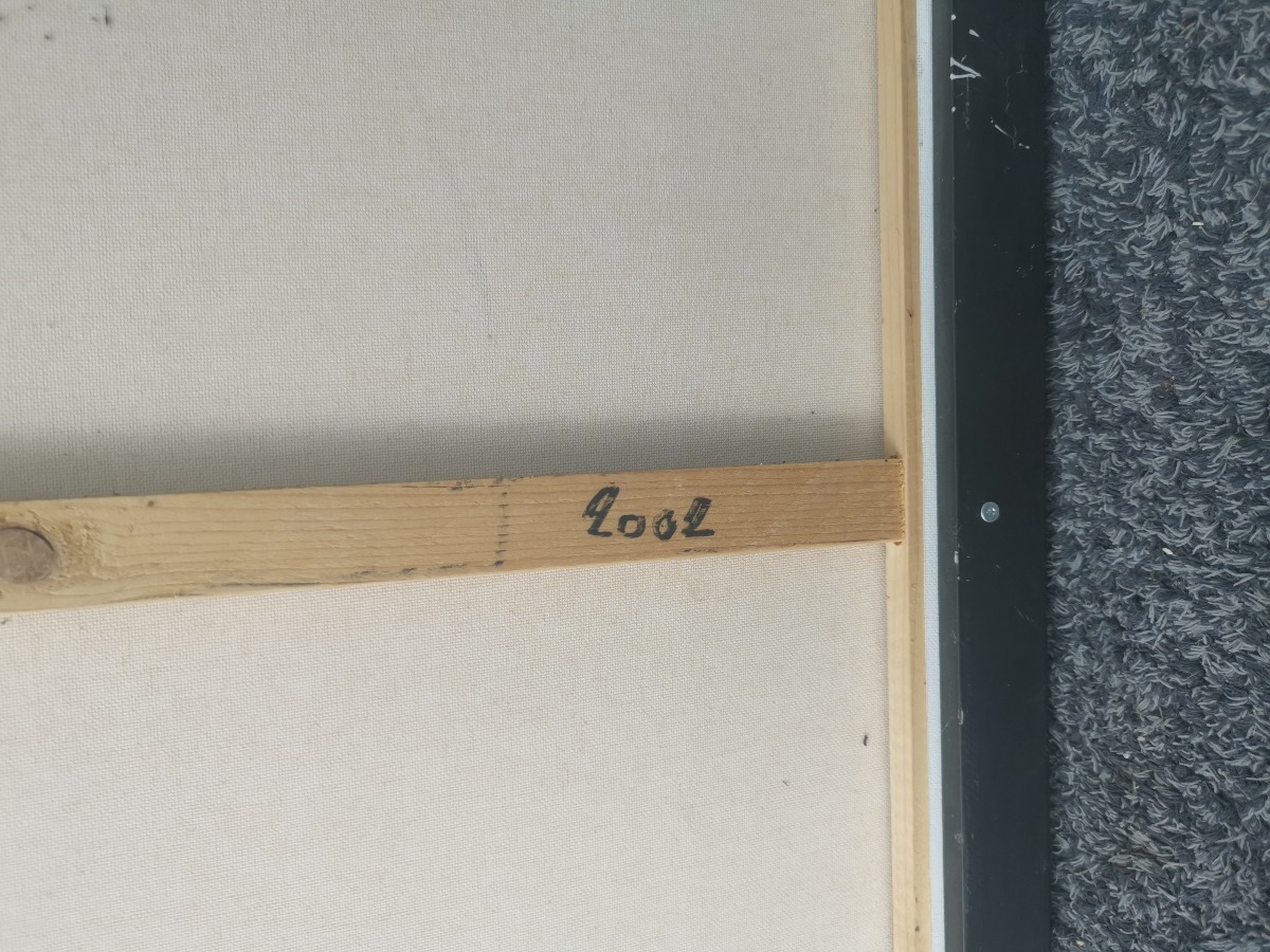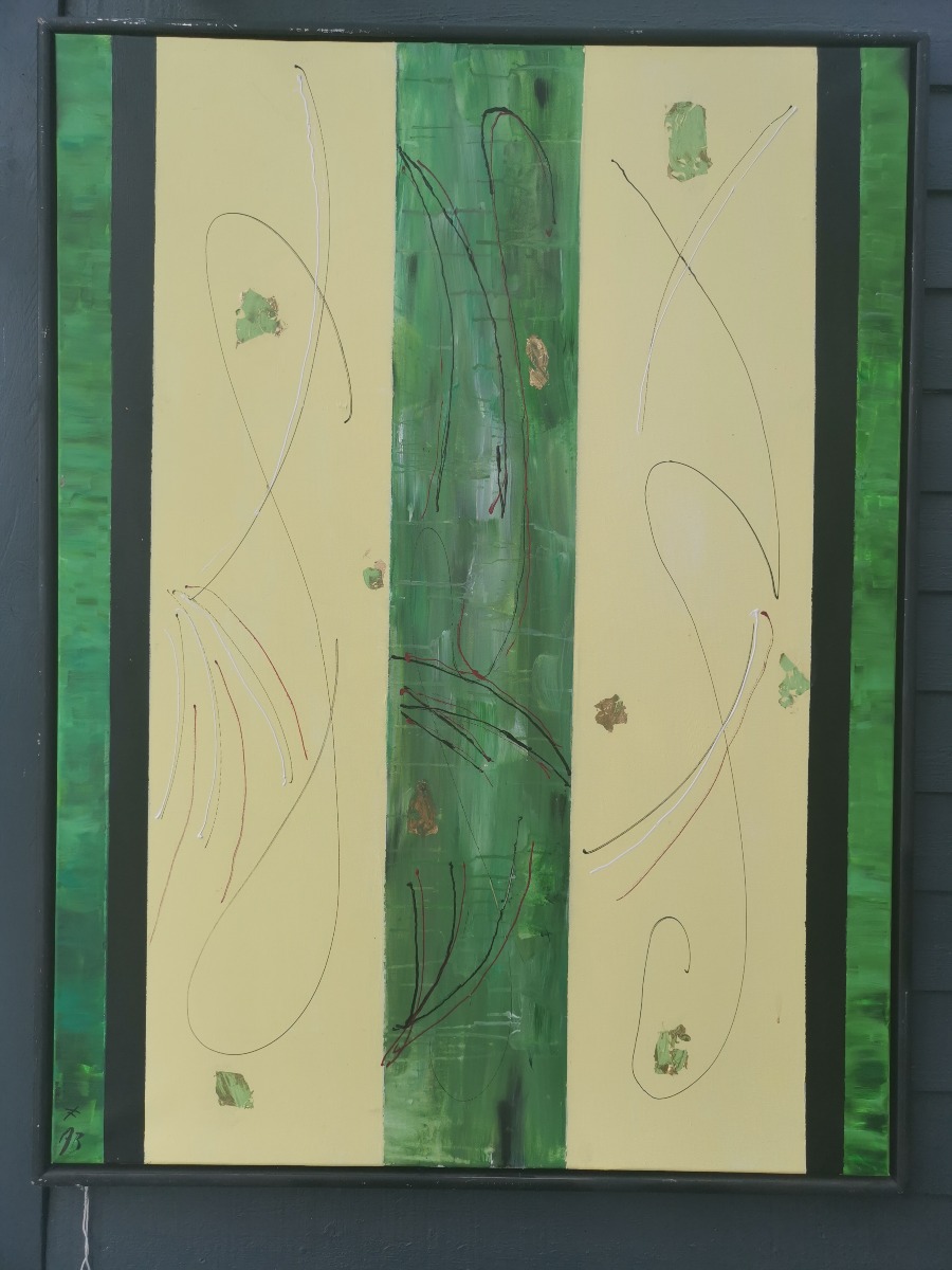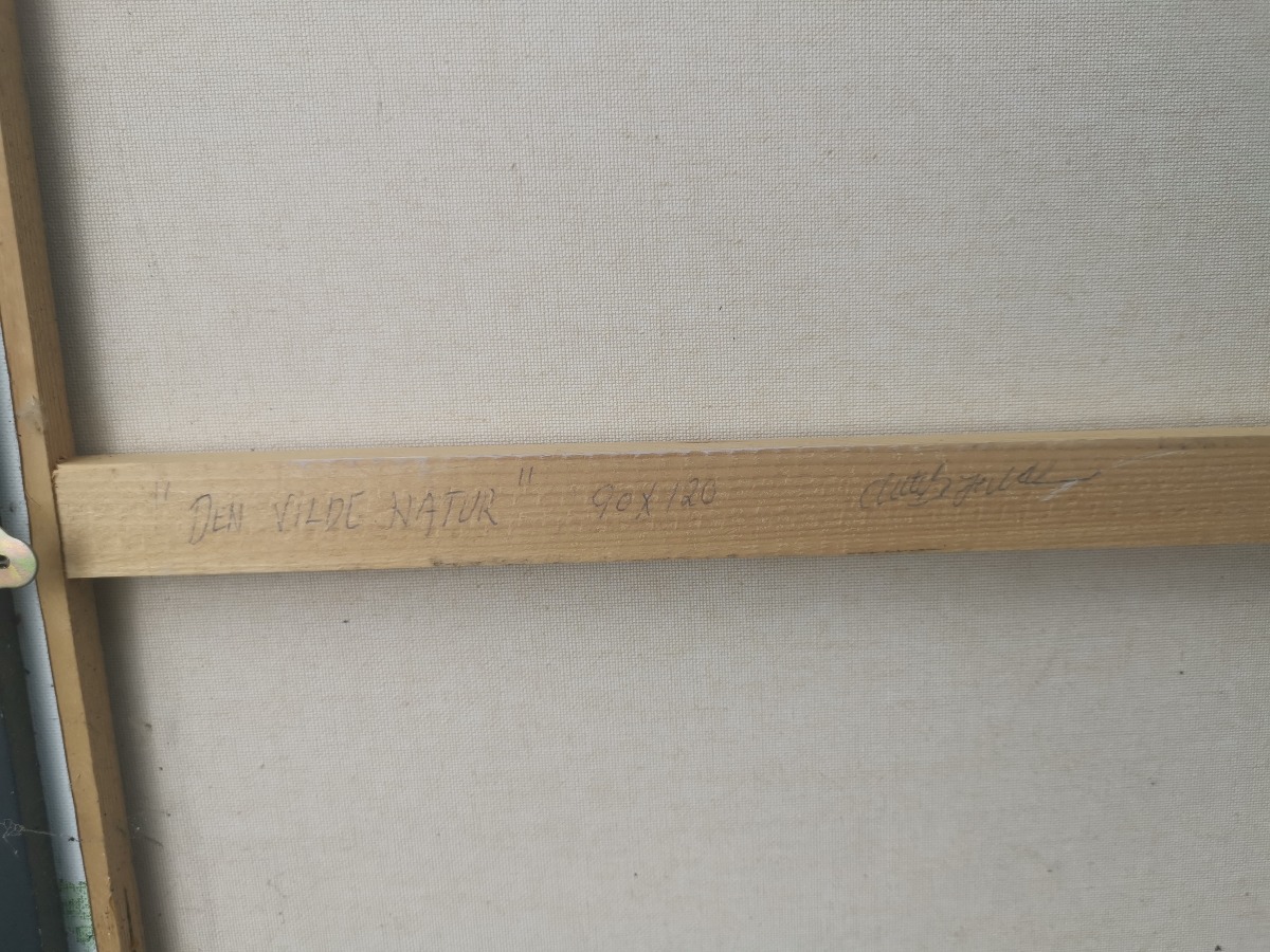 Anette Borgwardt. Komposition "Den vilde natur" Olie på læred. Signeret AB og ligeledes signeret og dateret på bagside. Afslag på rammen.