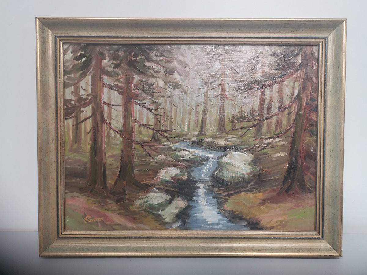 Maleri med motiv af vandløb. Olie på lærred. Signeret H. Jansen. 36 x 46 cm.