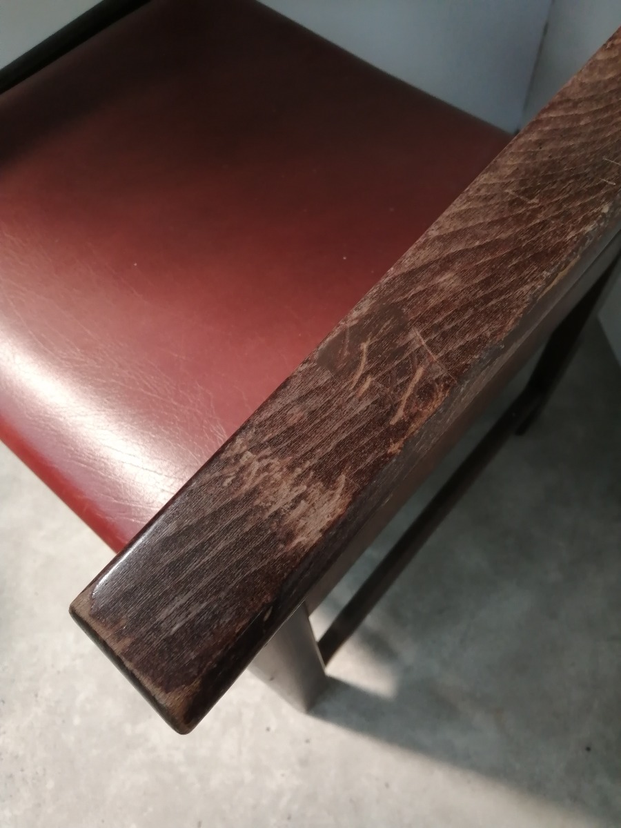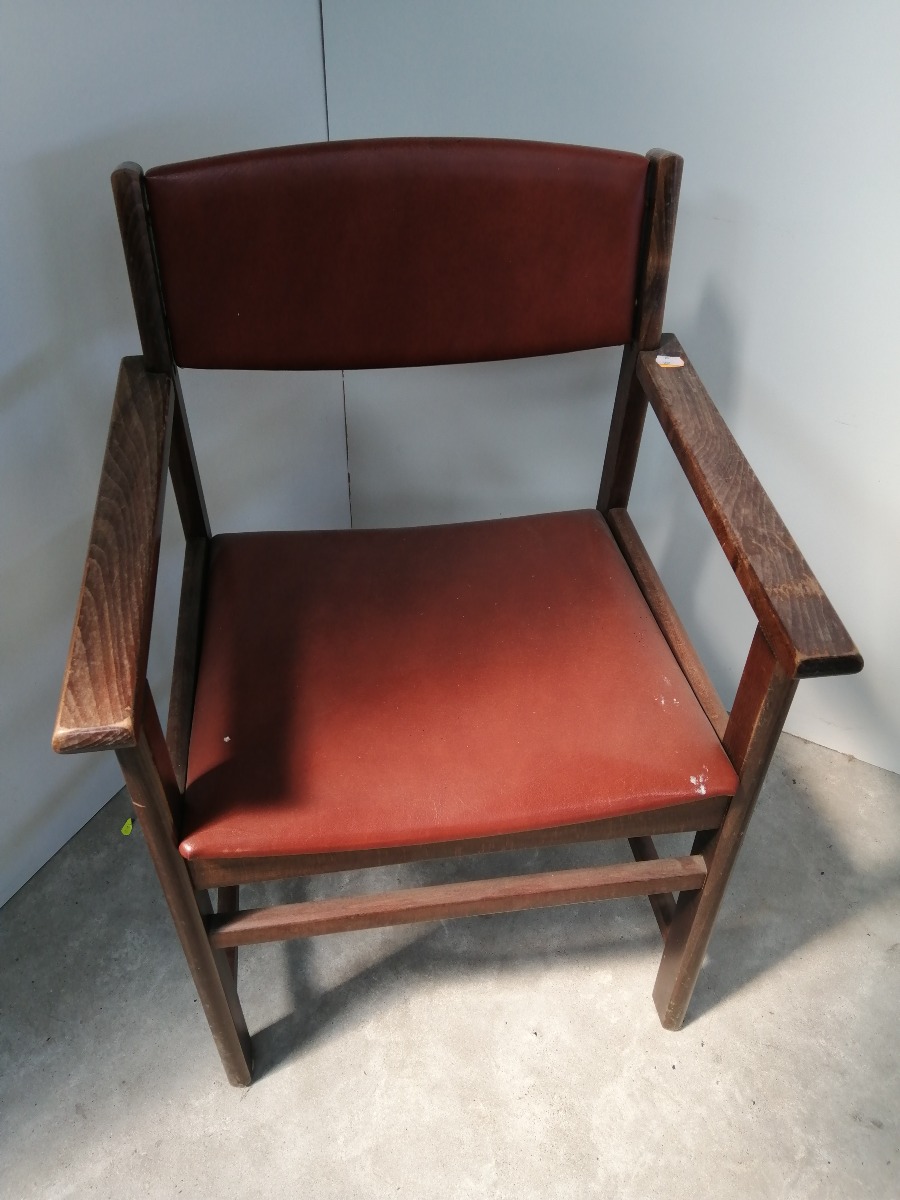 Stol med armlæn og nappa betræk. Brugt, og dermed brugsspor. MOMSFRI