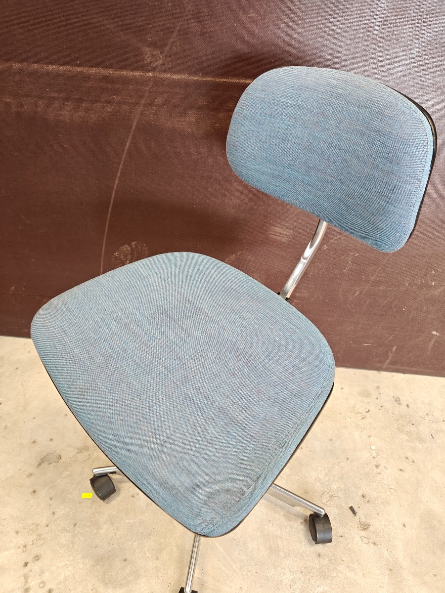 Kevi kontorstol model 2534U. Design Jørgen Rasmussen. Monteret med lyst nistret stof. Der kan forekomme mindre pletter og slid på varen. NB: Billederne er modelfotos.