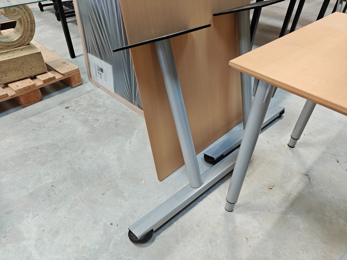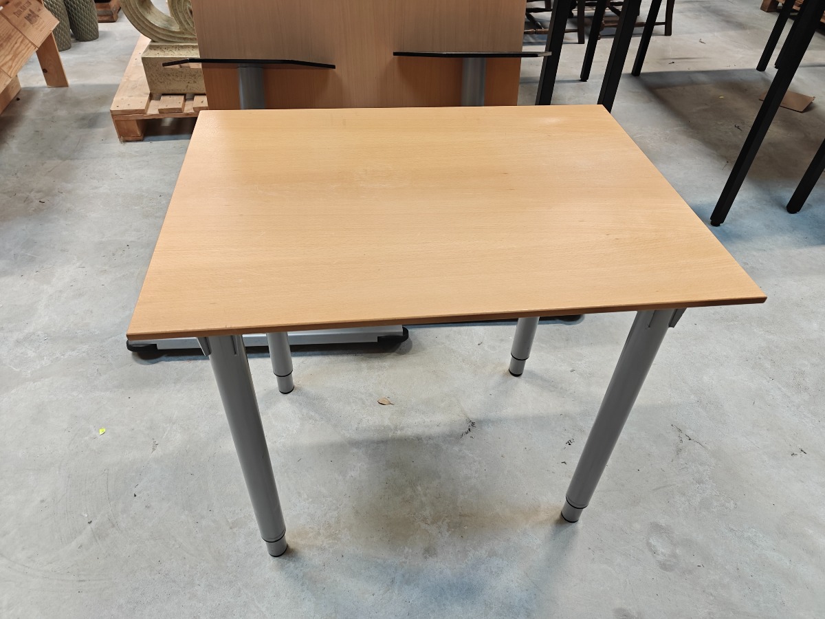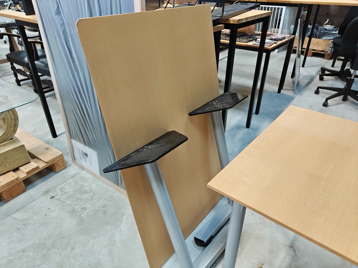 2 mindre borde på metalstel. Bordplade af bøg. Største er usamlet. 72 x 120 x 80 og 72 x 80 x 60 cm.